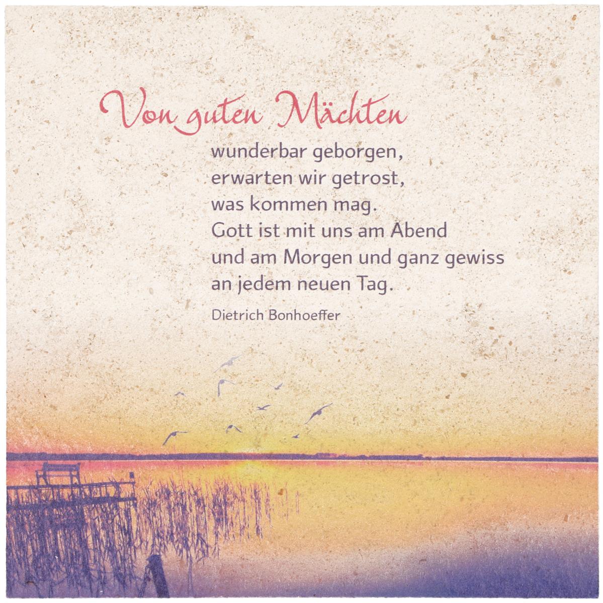 Text auf dem Produkt: Von guten Mächten wunderbar geborgen, erwarten wir getrost, was kommen mag. Gott ist mit uns am Abend und am Morgen und ganz gewiss an jedem neuen Tag. (Dietrich Bonhoeffer)