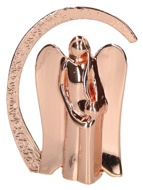 Engel-mit-Kind-Figur zum Aufstellen aus Feinmetall in Roségold; Lieferung in Geschenkverpackung