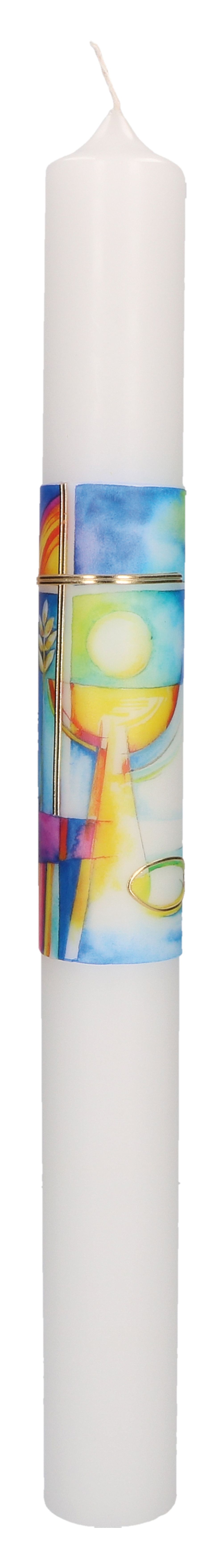 Kommunionkerze mit aufgelegtem Wachsmotiv