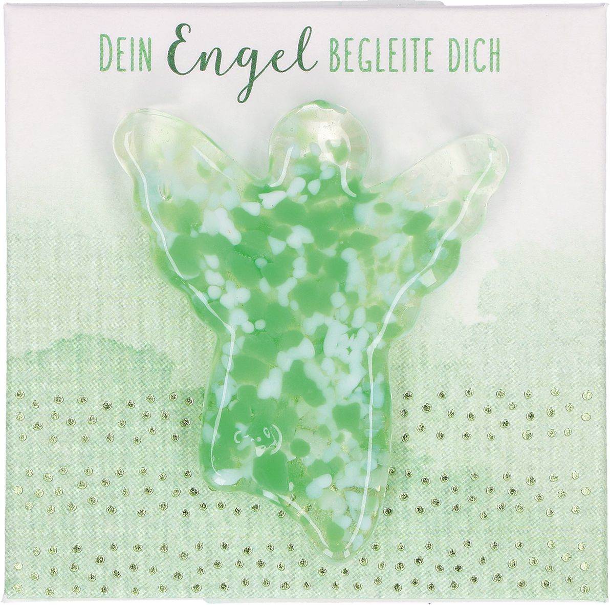 Handschmeichler aus grün-weißem Fusingglas in Engelform; Lieferung in Geschenkverpackung