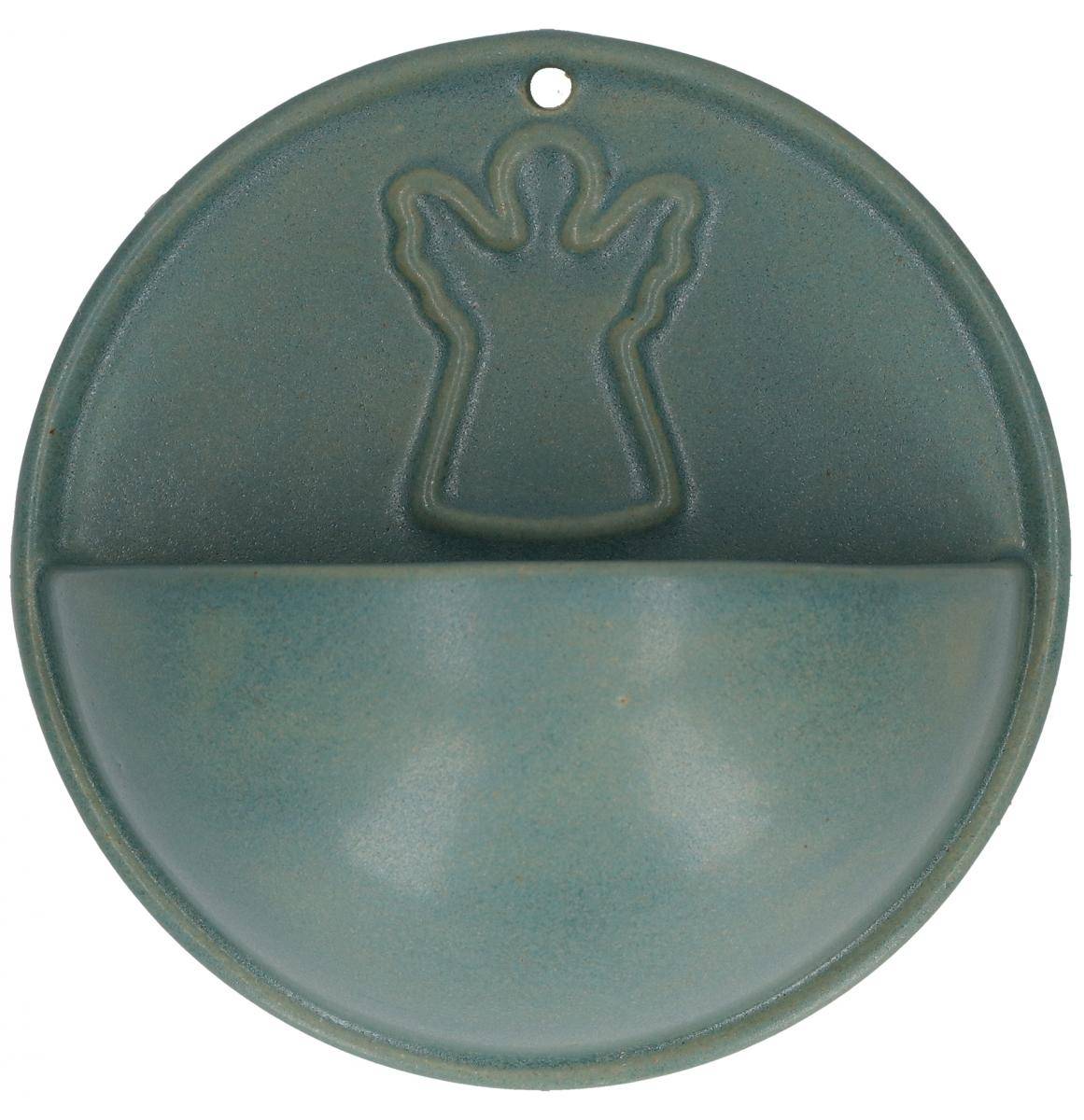 Weihwasserbecken aus Keramik mit Engel, petrol matt, rund