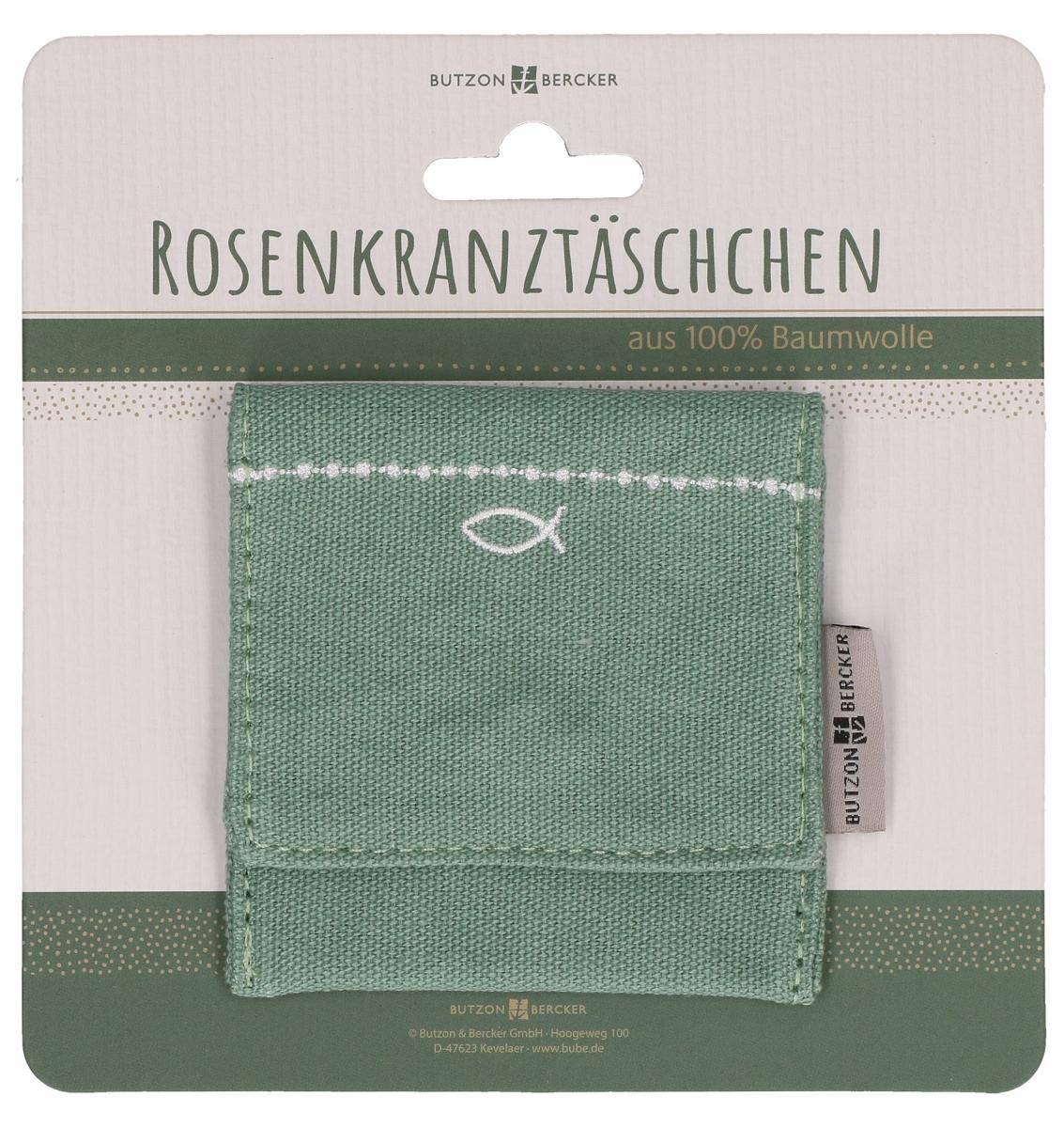 Petrolfarbenes Rosenkranztäschchen mit Fischmotiv