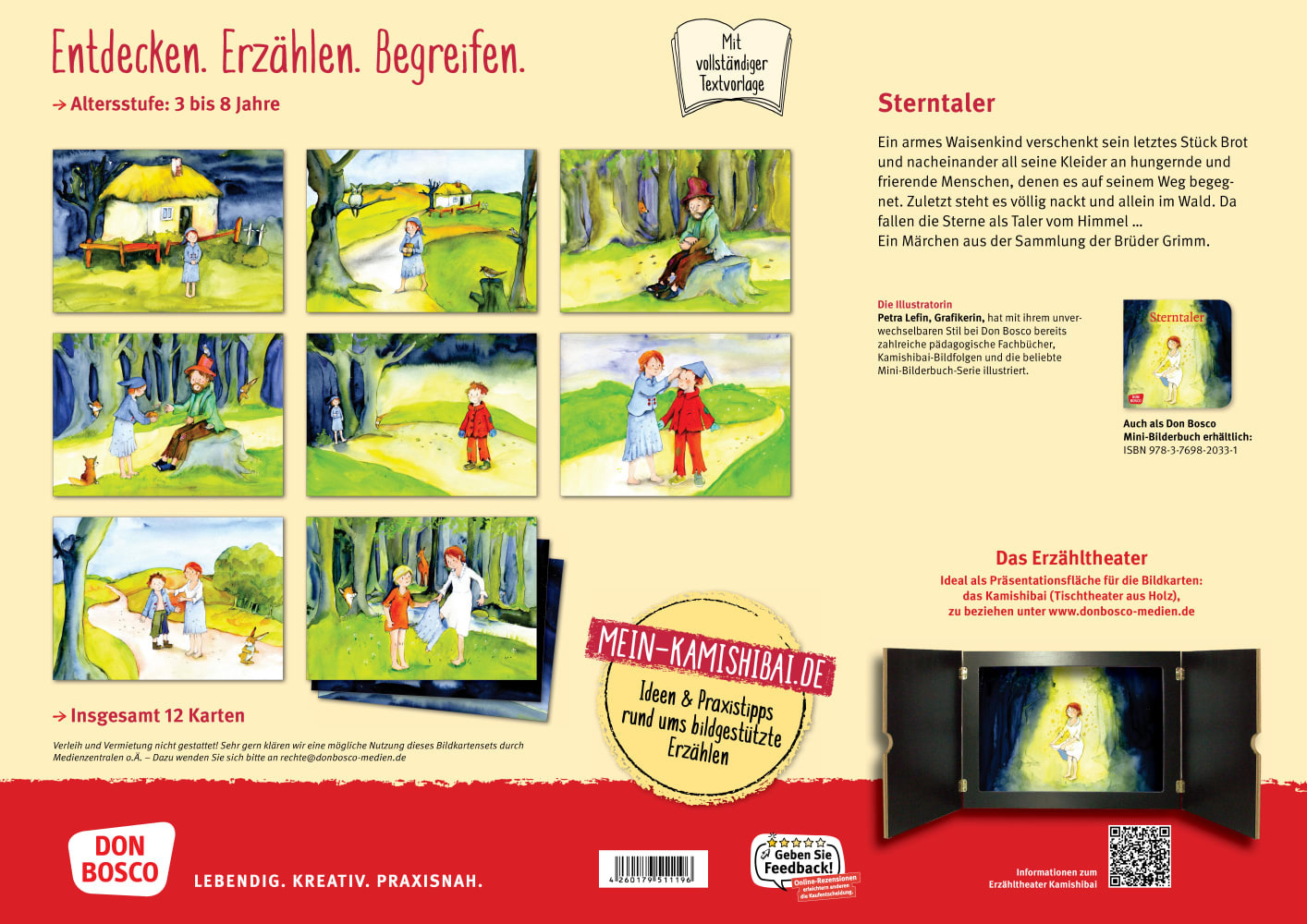 Ein armes Waisenkind verschenkt alles, was es hat, an hungernde und frierende Menschen. Zuletzt steht es völlig nackt und allein im Wald. Da fallen die Sterne als Taler vom Himmel