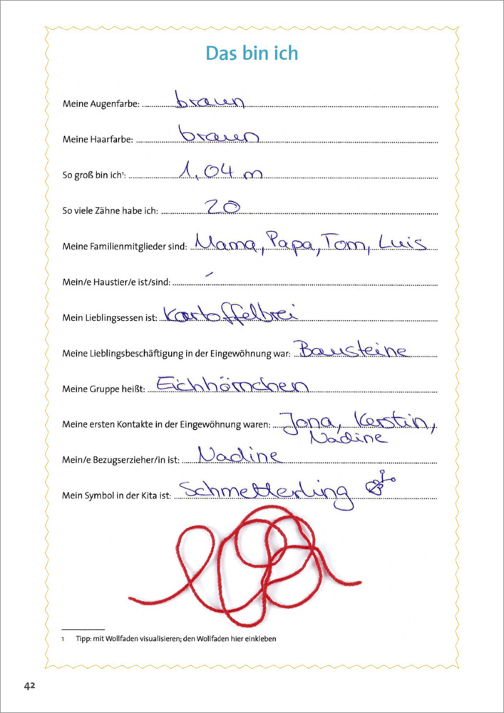 - außerdem 5 Heften "Eingewöhnung" zum Ausfüllen, pro Heft für je ein Kind geeignet (jeweils 23 Seiten, geheftet, schwarz-weiß)