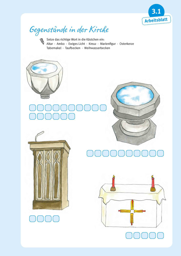 Zu jeder Gruppenstunde enthält die Begleitmappe Materialien mit: Glaubenswissen, Gebeten, Texten, Bildern und viel Raum zur persönlichen Gestaltung. Im Vorbereitungskurs gibt die Katechetin oder der Katechet die einzelnen Arbeitsblätter nach und nach an die Kinder weiter. In einem Schnellhefter o. ä. abgeheftet, erhält jedes Kind am Ende des Kurses seine individuell gestaltete Erstkommunionmappe. Staffelpreise bei Abnahme größerer Mengen. Dazu erhältlich: das Handbuch für Katechetinnen und Katecheten.