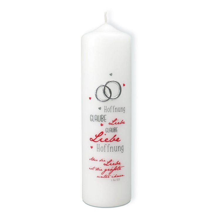 Die Hochzeit zählt nicht nur in christlichen Haushalten zu den wichtigsten Festen überhaupt, die durch würde- und stimmungsvolle Dekorationen einen adäquaten Rahmen erhält. Die Hochzeitskerzen dieser Kategorie tragen hierzu bei und sichern dem Brautpaar mit christlichen Motiven oder Sprüchen Gottes Segen für den Rest des gemeinsamen Lebens zu. Hierneben warten schmuckvolle Hochzeitskerzen mit einem profanen Charakter, die zur Dekoration des Hochzeitssaals und anderer Festräume einladen. Mit dem Kauf von Hochzeitskerzen für jeden Tisch oder Gast lässt sich außerdem eine kleine Aufmerksamkeit erwerben, die zum symbolträchtigen Erinnerungsstück für alle Hochzeitsgäste wird.