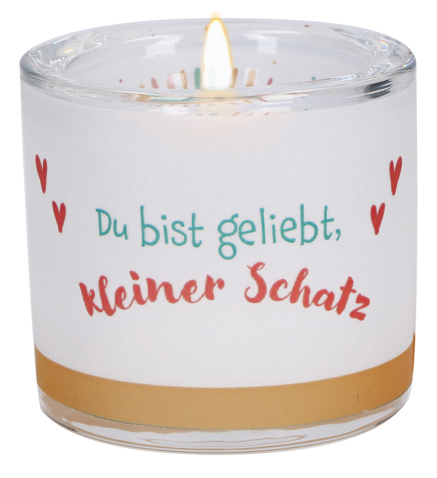 Wenn das Teelicht im Inneren brennt, leuchten Regenbogen und Schriftzug sanft auf und zaubern eine geborgene Atmosphäre im Baby- oder Kinderzimmer. Ein wunderschönes Erinnerungslicht für Eltern, Großeltern und Paten.