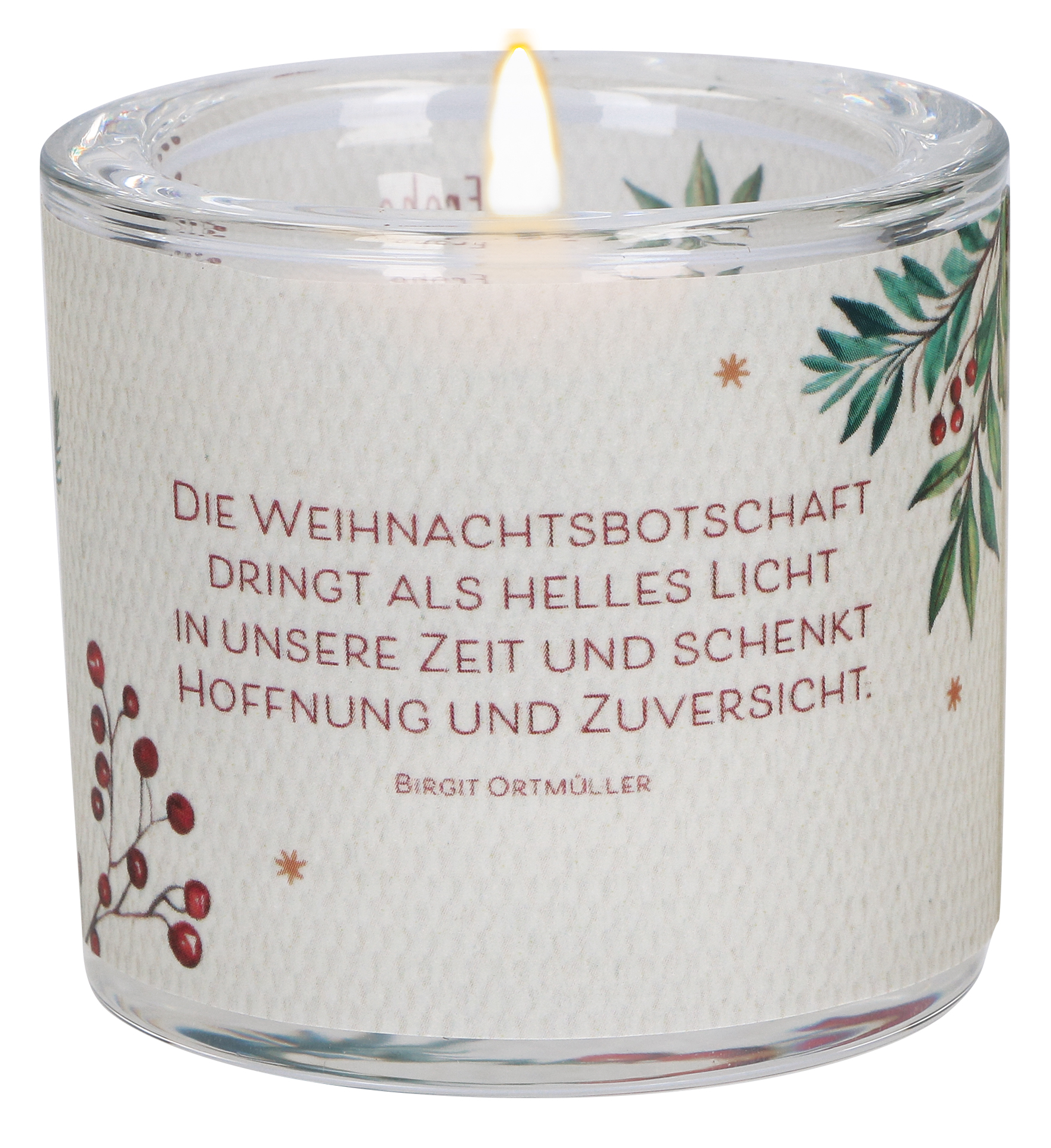 Text auf dem Produkt: Die Weihnachtsbotschaft dringt als helles Licht in unsere Zeit und schenkt Hoffnung und Zuversicht. (Birgit Ortmüller)