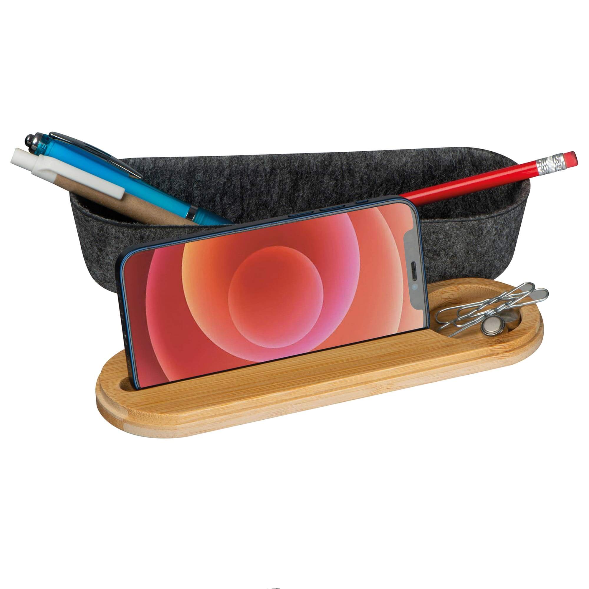 Umweltfreundlich und innovativ: Unser vielseitiges Etui für Schreibutensilien aus recyceltem Filz mit multifunktionalem Bambusdeckel und cleveren Details.