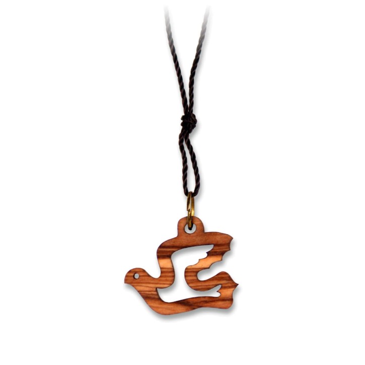 Taube, klein, aus Olivenholz, mit brauner Baumwollschnur