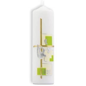 Symbolkerze 400x40 mm mit aufgelegtem Wachsmotiv Regenbogenkreuz