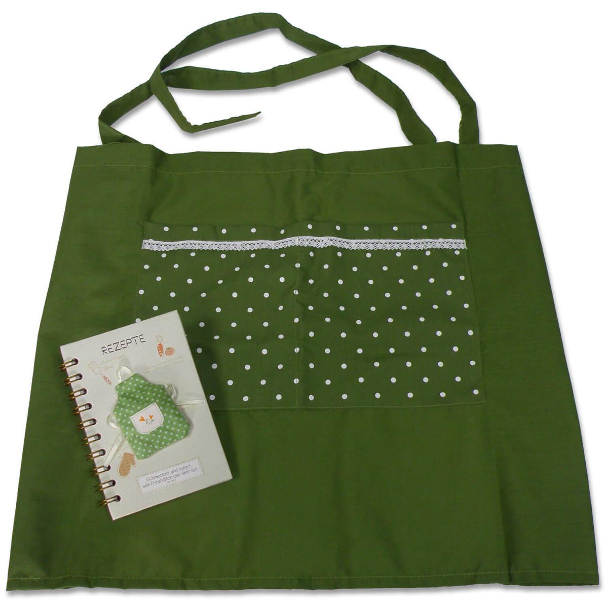 Geschenkschachtel mit Rezeptbuch (inklusive Register) und Schürze (65x45 cm) zum Umbinden, Text "Schmecket und sehet…"