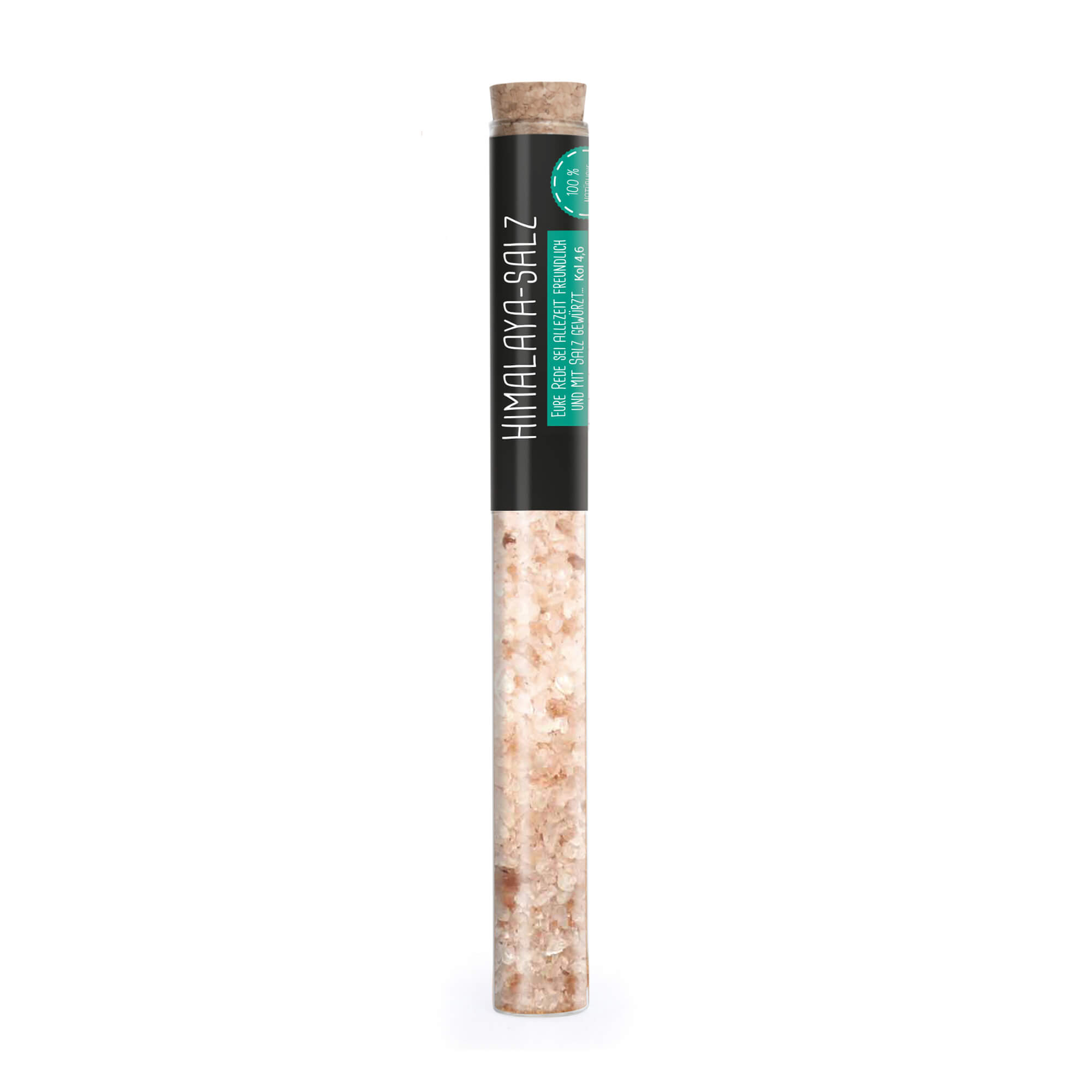 Das Himalaya-Salz ist hochwertig und naturbelassen, ohne Zusätze. Es zeichnet sich durch seine Würzkraft aus und ist eine ideale Alternative zu herkömmlichem Speisesalz. Es ist außerdem reich an Spurenelementen. Gewonnen wird das Salz in Pakistan, am Fuße des Himalayas. Bedruckt ist das Etikett auf dem Röhrchen mit dem stimmigen Vers „Eure Rede sei allezeit freundlich und mit Salz gewürzt Kol 4,6.“ Inhalt: 40g Himalaya-Salz im Glaszylinder aus recyceltem Glas mit Korkstopfen