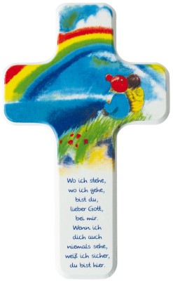 Gott steht uns immer mit seiner Liebe zur Seite, auch wenn wir ihn nicht sehen können. Ein Kinderkreuz, das Tag und Nacht daran erinnert, dass jemand über uns wacht.