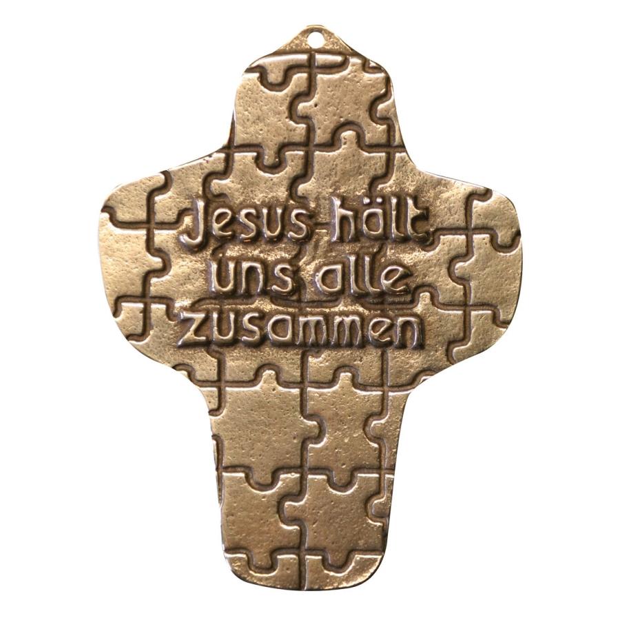 Kommunionkreuz - Bronzekreuz Jesus hält uns alle zusammen