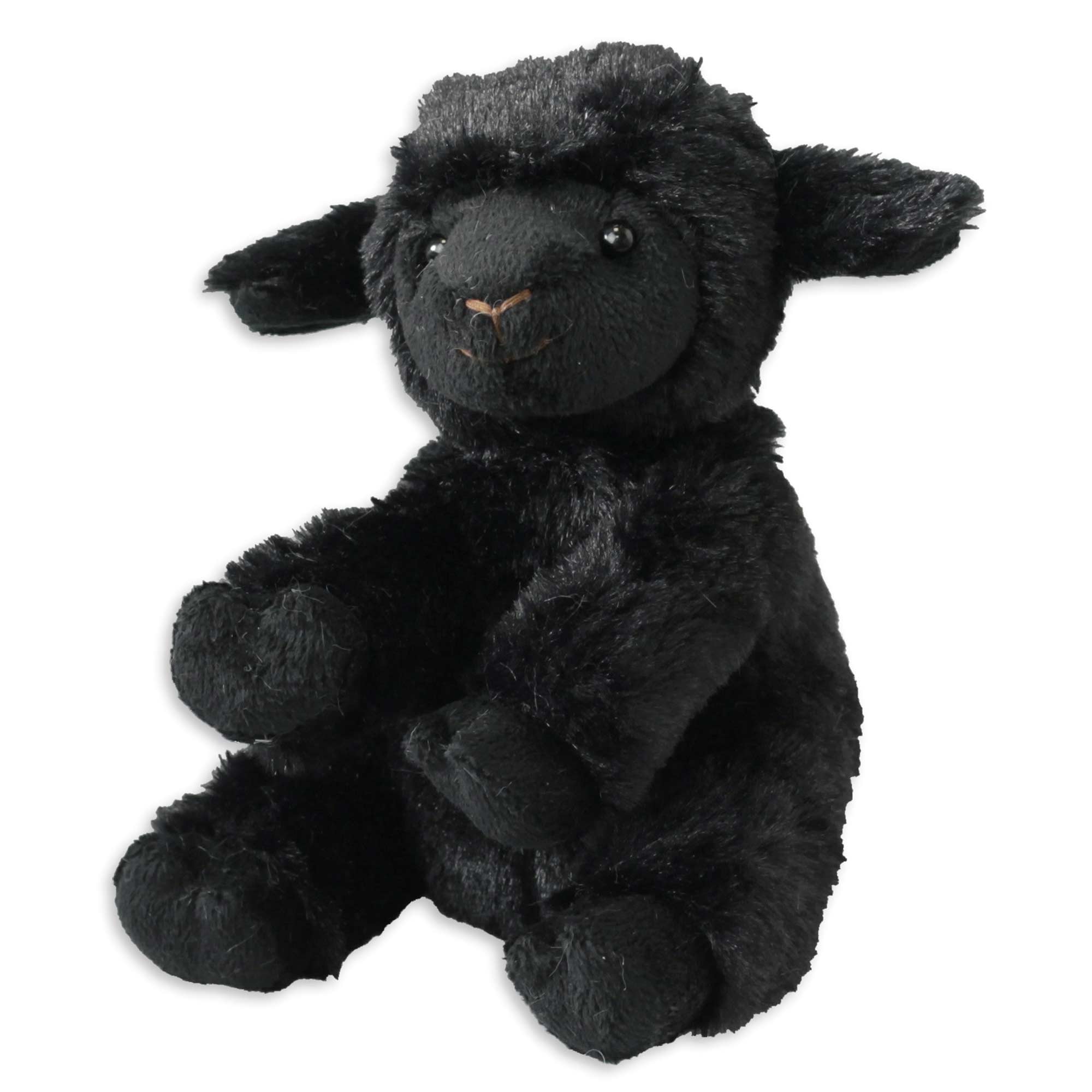 Darf in keinem Kinderzimmer fehlen. Das lächelnde, schwarze Kuscheltier Schäfchen aus softem Plüsch mit den dunklen Knopfaugen muss man einfach lieb haben.