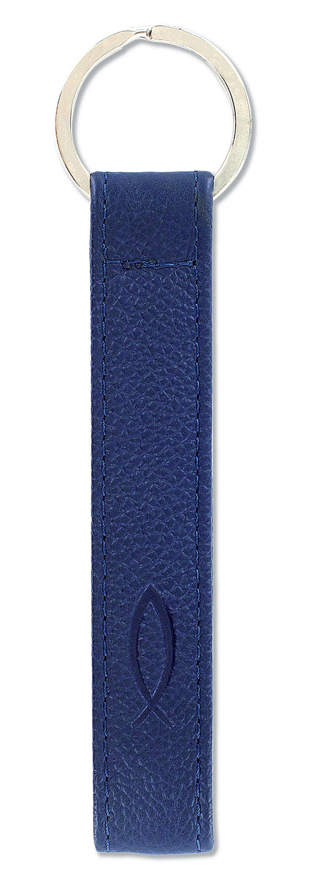 Leder-Schlüsselanhänger mit Fisch-Prägung, dunkelblau