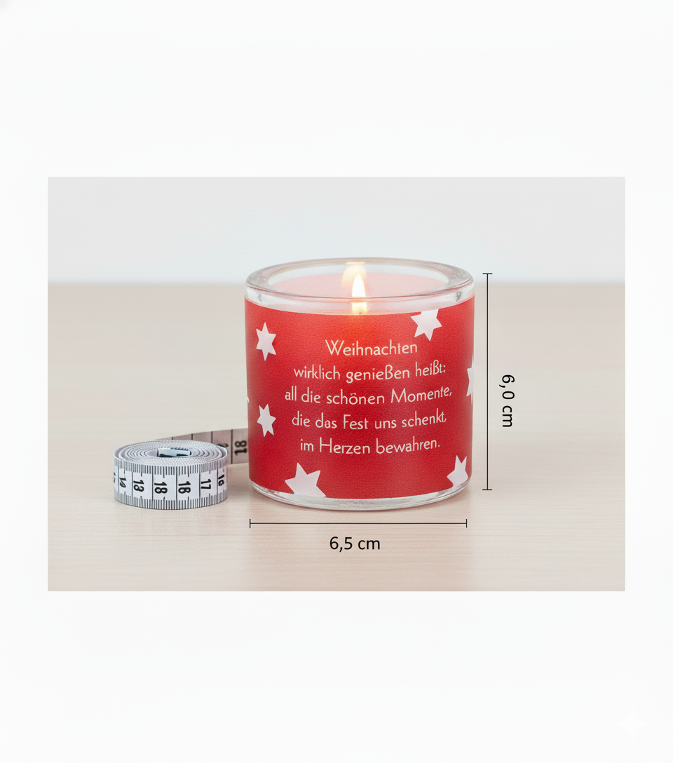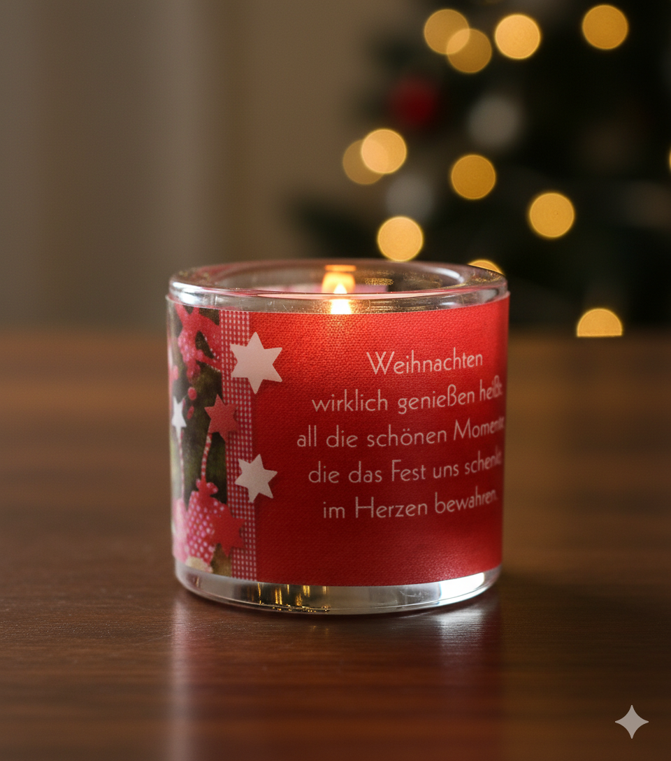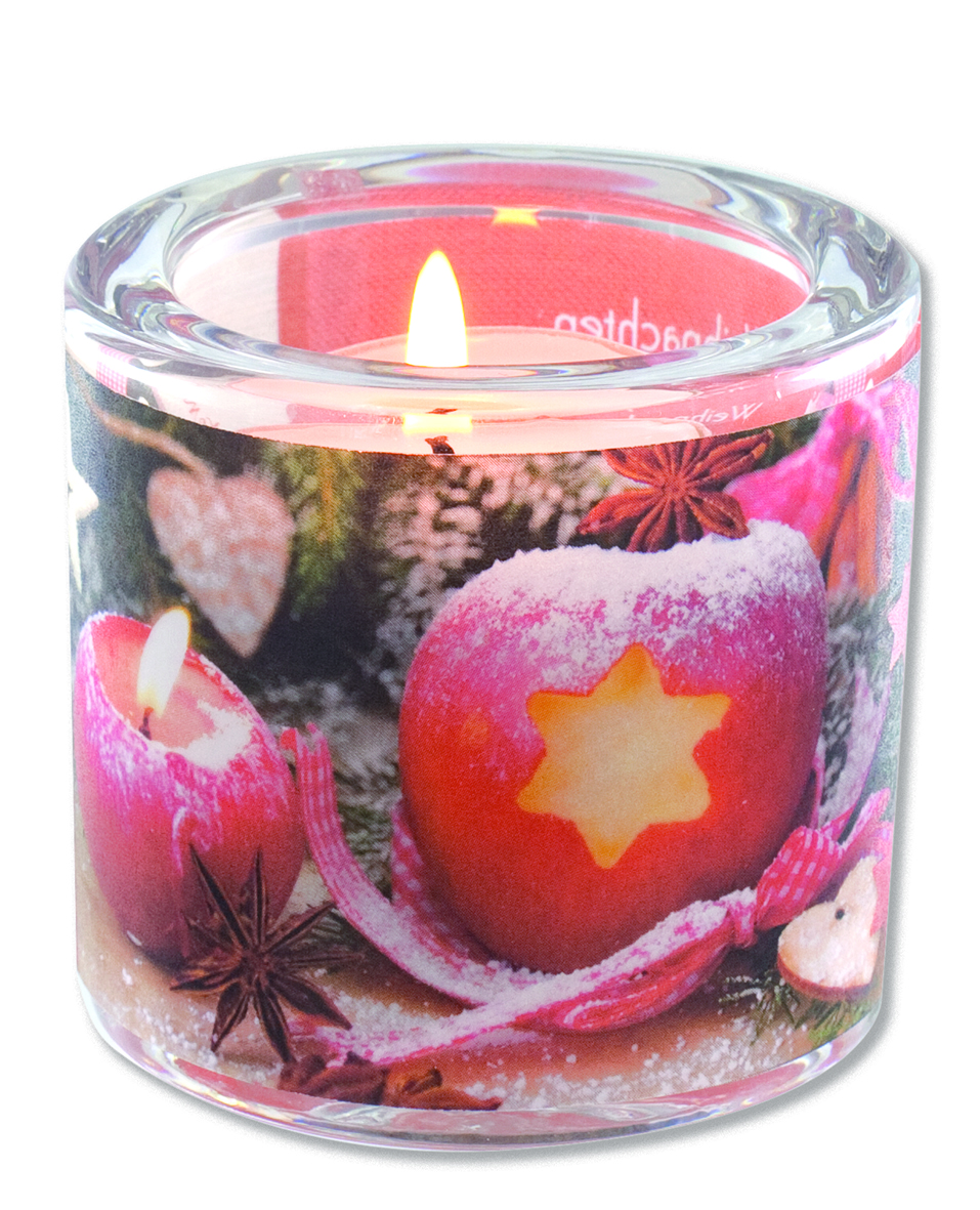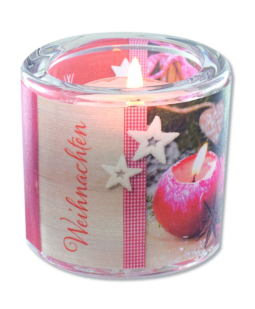 Glaswindlicht mit farbig bedrucktem Pergamentumleger inkl.Teelicht - Lieferung in Geschenkverpackung