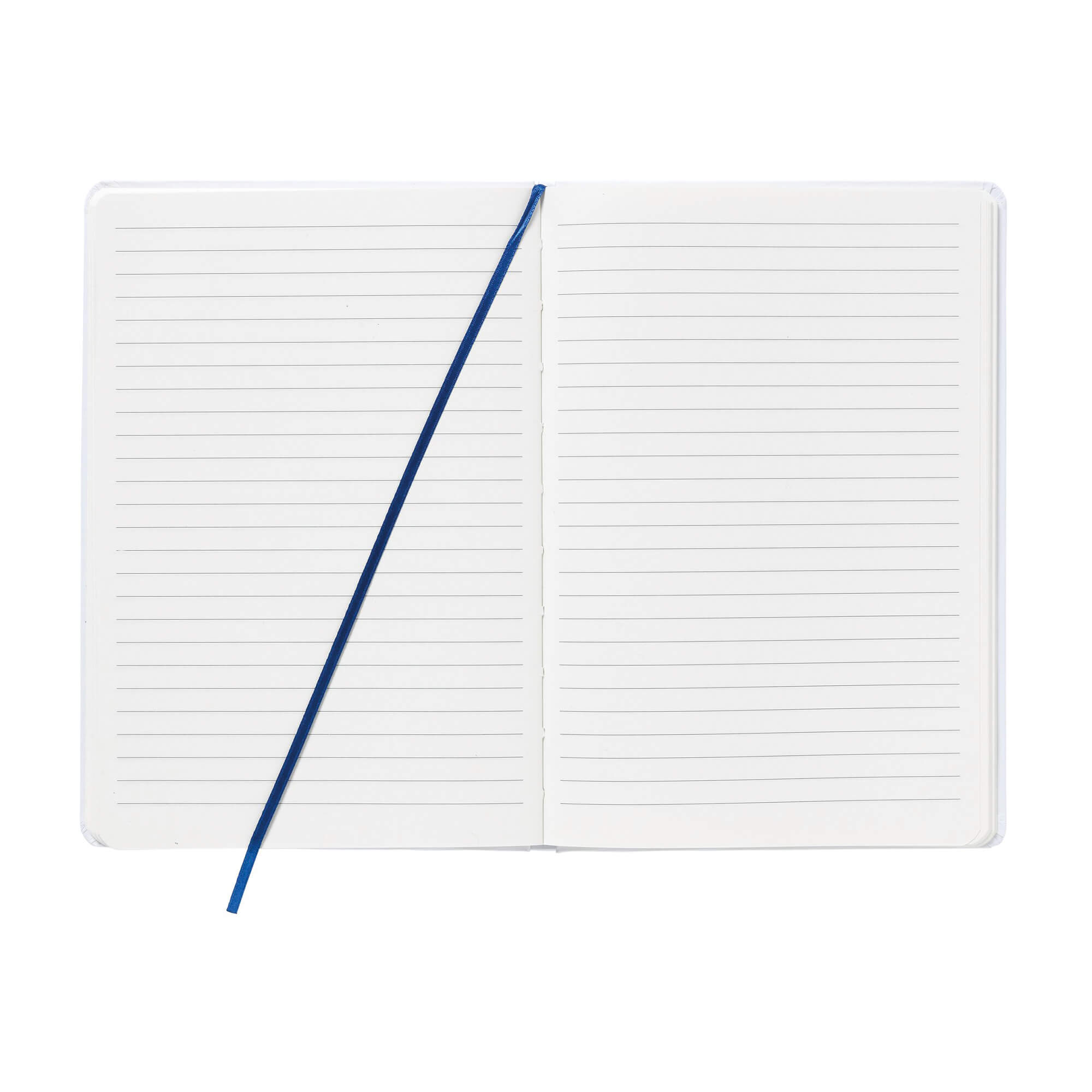 Nachhaltiges Notizbuch im DIN A5-Format, mit RPET-Cover (aus PET-Flaschen) und ca. 80 Blatt cremefarbenem, liniertem Papier (FSC-zertifiziert). Bedruckt ist das Cover mit unserem Motiv der Jahreslosung 2026. Ausgestattet ist das Notizbuch mit praktischem Gummiband, Lesezeichen und Stiftschlaufe.