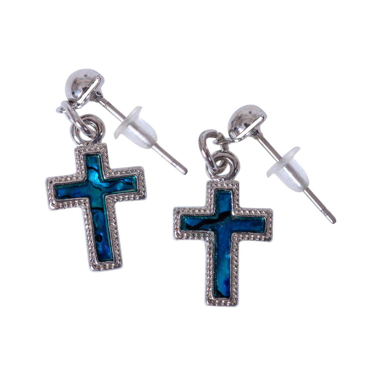 Hübscher Modeschmuck: Ohrstecker aus Metall, Kreuz mit Permutt-Einlage, ca. 0,9 x 1,2 cm