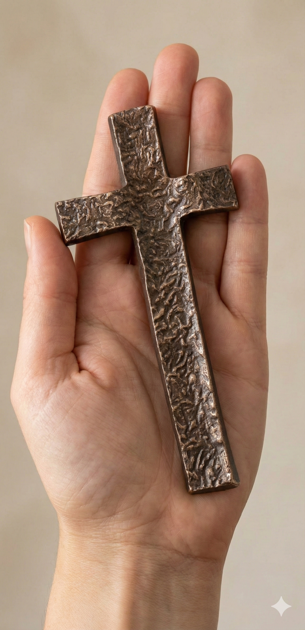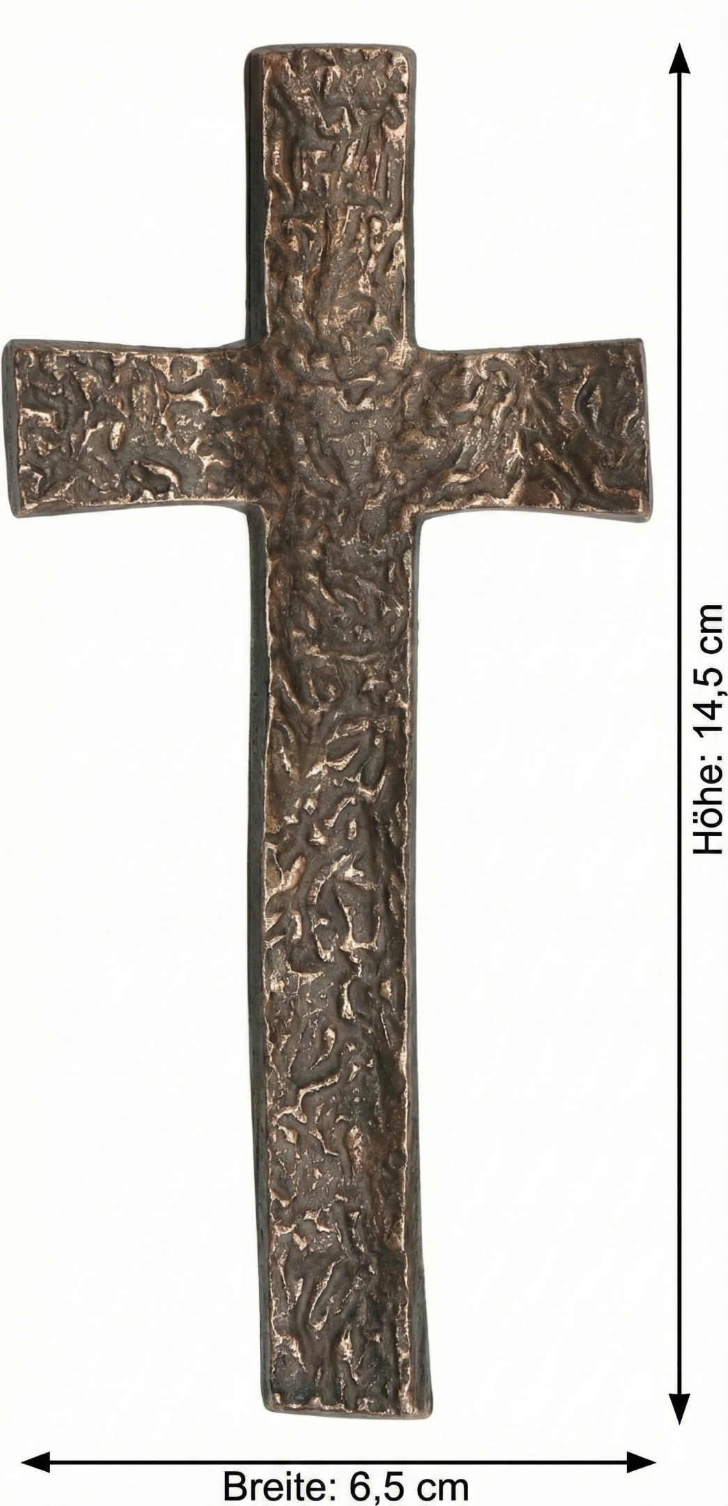 In fließender Form gestaltet, steht das Wellenkreuz aus Bronze für die Kraft des Glaubens, die – wie eine Welle – alles durchdringen kann. Die dunkle Patinierung verleiht dem 14,5 cm großen Wandkreuz Tiefe und Ausdruck, während die geschwungene Linienführung Bewegung und Lebendigkeit symbolisiert.