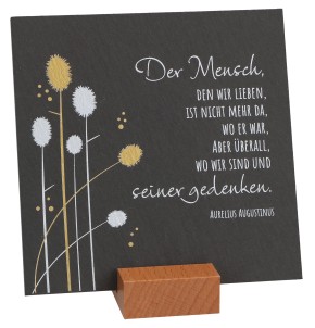 Text auf dem Produkt: Der Mensch, den wir lieben, ist nicht mehr da, wo er war, aber überall, wo wir seiner Gedenken. (Aurelius Augustinus)