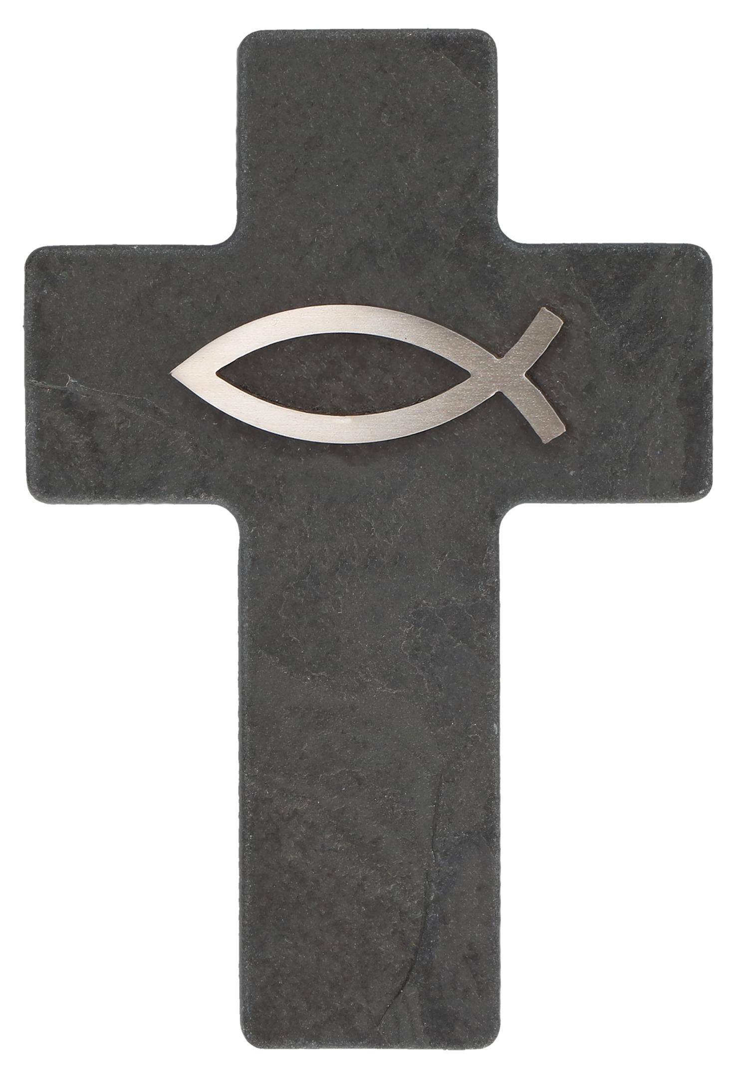 - Inhalt: Schieferkreuz mit Fisch aus Edelstahl, mit stabiler Aufhängung; Lieferung in Geschenkverpackung,