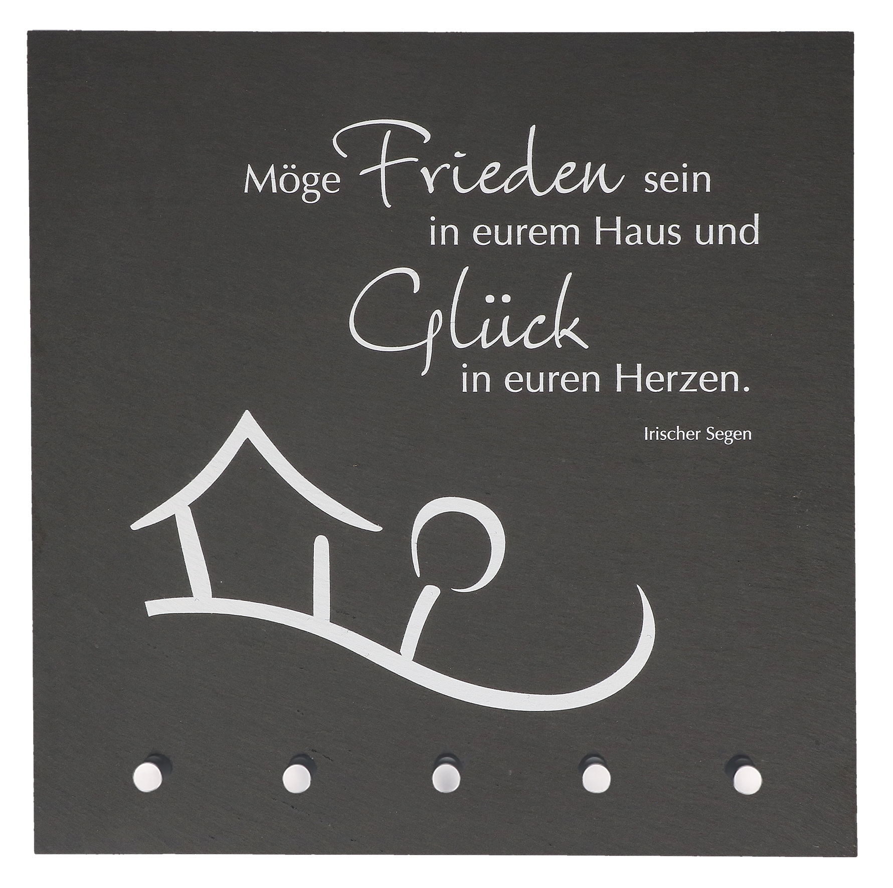 - Inhalt: Schlüsseltafel aus Schiefer mit 5 Haken, weiß bedruckt, Lieferung in Geschenkverpackung,