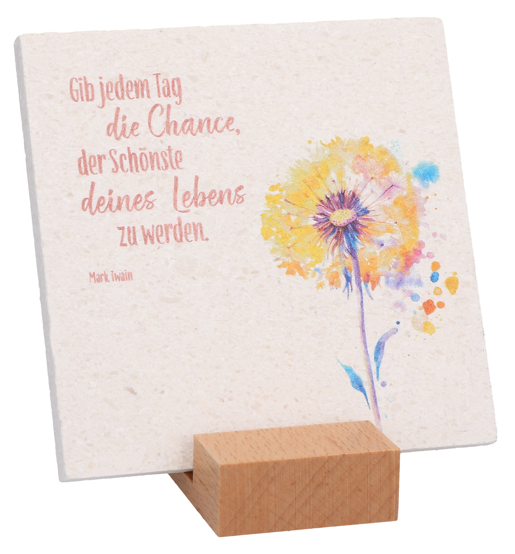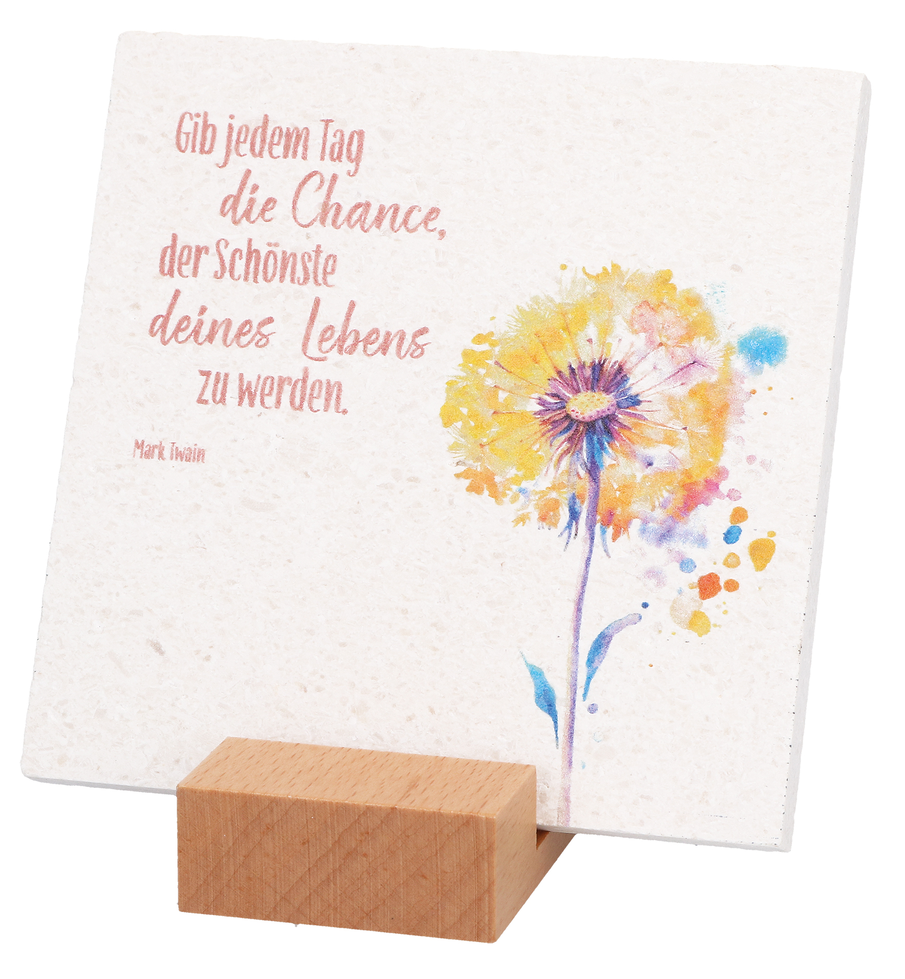 • Inhalt: Natursteintafel, farbig bedruckt; mit Holzsockel zum Aufstellen; Lieferung auf Backcard,