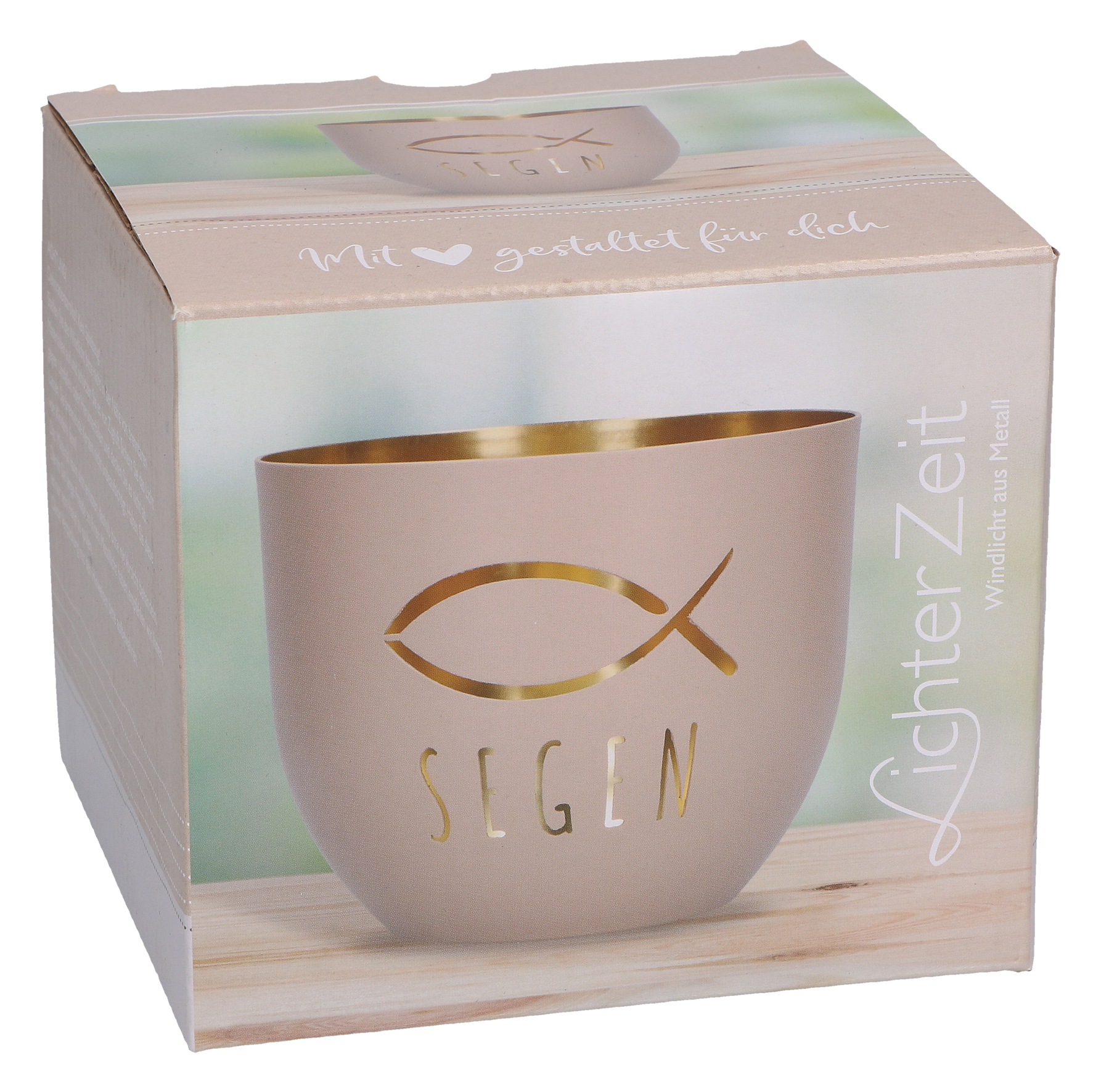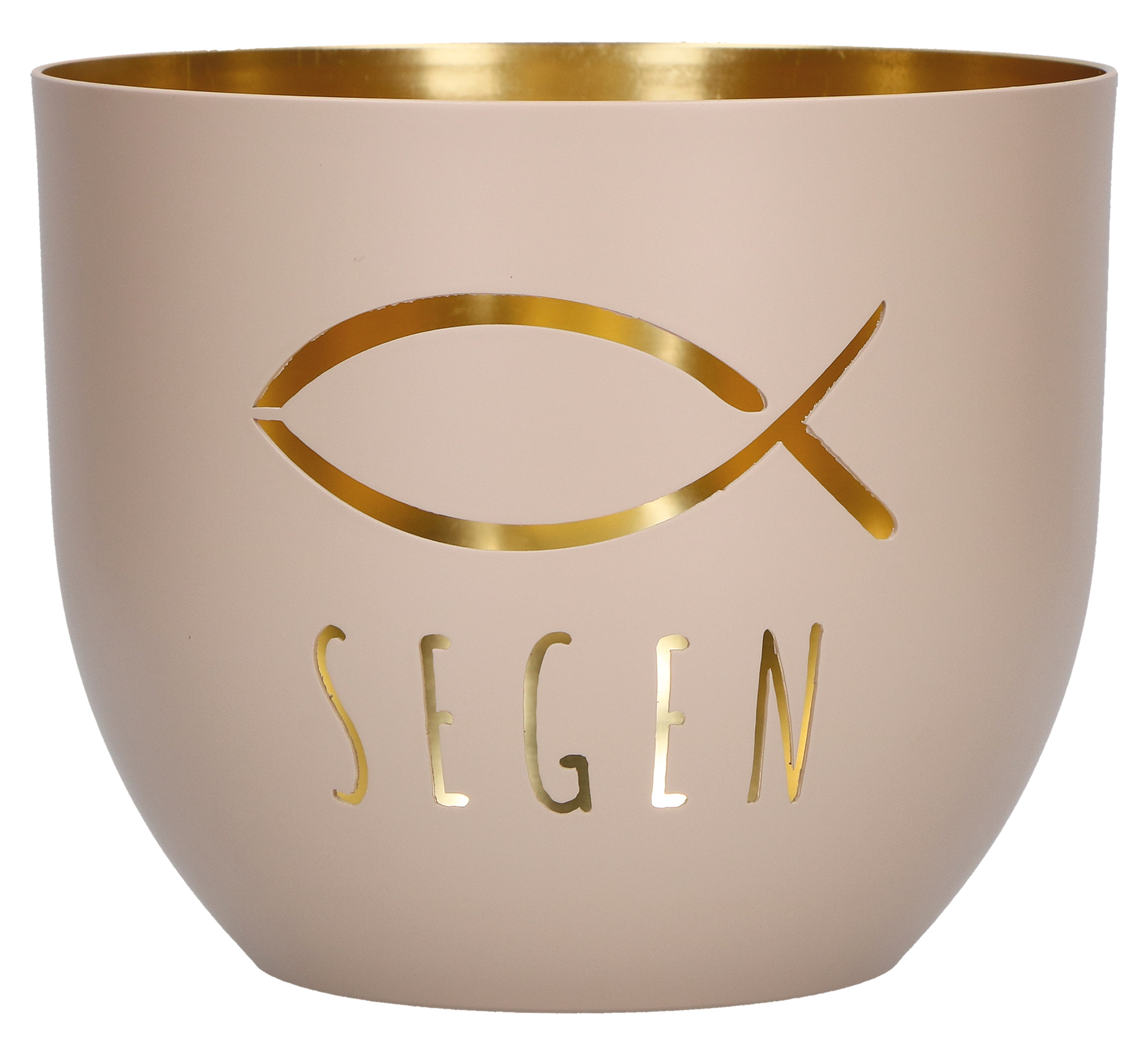 - Inhalt: Windlicht aus Metall; Motiv durchbrochen; von Außen graubeige-matt; von Innen goldveredelt; Lieferung in Geschenkverpackung,