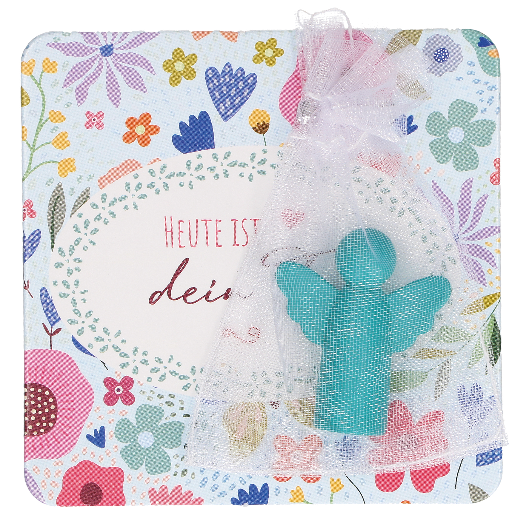Die Engelfigur ist ein kleines, aber bedeutungsvolles Geschenk, das Schutz und Liebe vermittelt. Die türkise Engel-Figur aus mattiertem Feinmetall misst 2,5 x 3 cm und wird in Organzabeutel auf einer eleganten Backcard geliefert. Ein perfektes Geschenk für viele Anlässe, das an die liebevolle Begleitung durch einen Engel erinnert. Der Engel ist ein wunderbares Symbol für Hoffnung und Fürsorge.