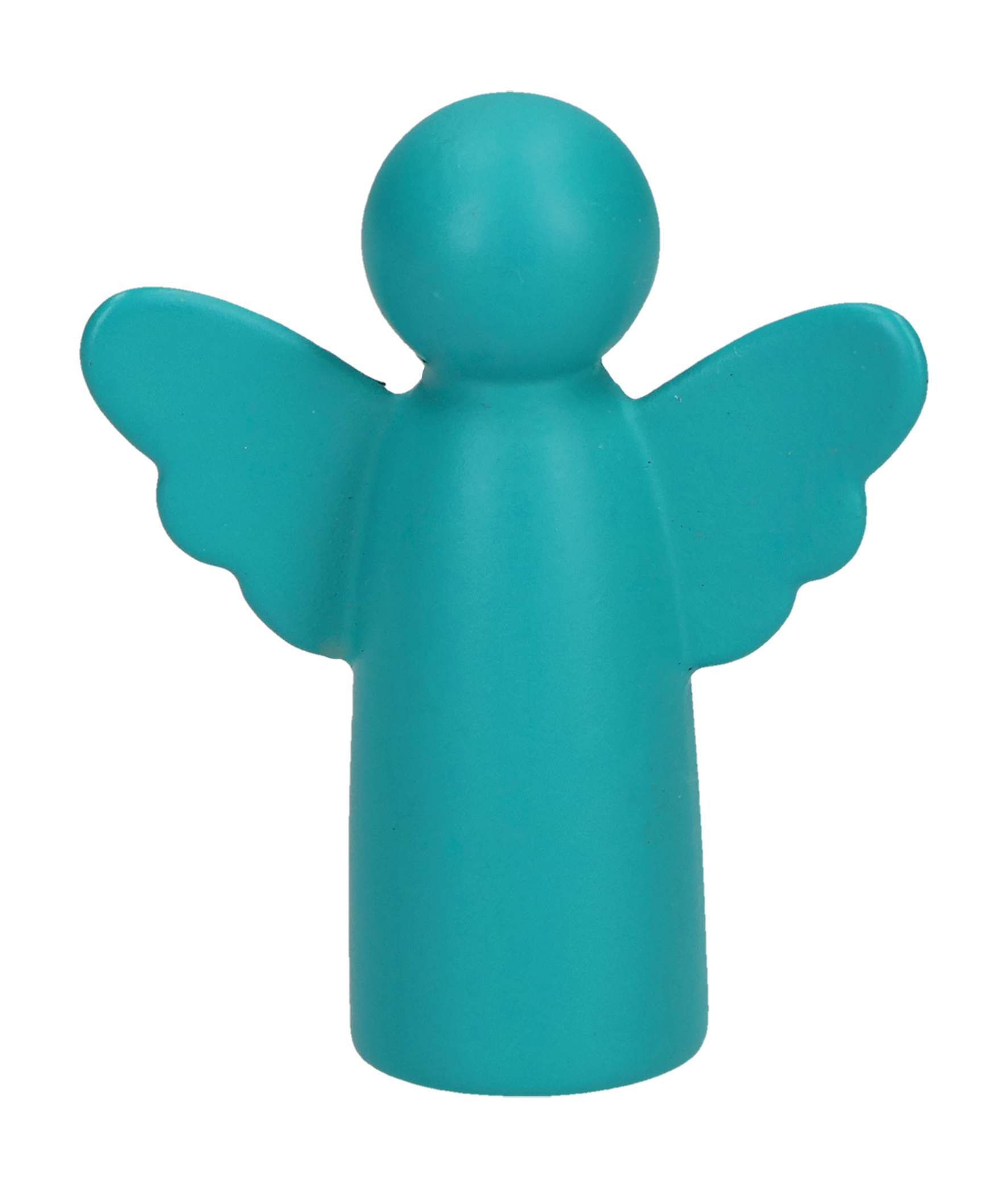 - Inhalt: Engel-Figur aus Feinmetall in türkis-matt, zum Aufstellen, Lieferung in Organzabeutel auf Backcard,