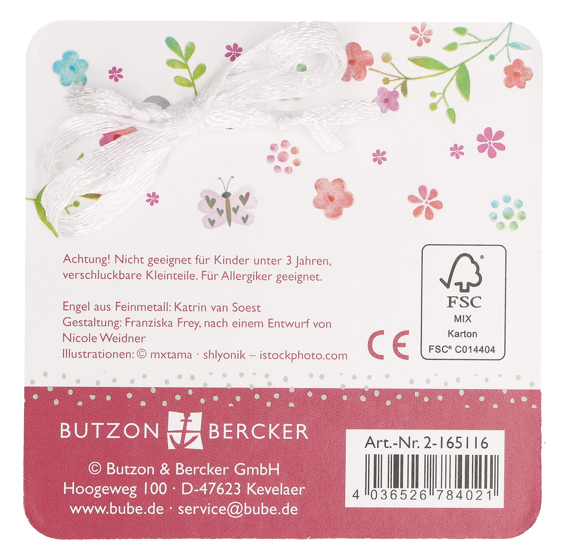 • Inhalt: Engel-Figur aus Feinmetall in pink-matt, zum Aufstellen, Lieferung in Organzabeutel auf Backcard,