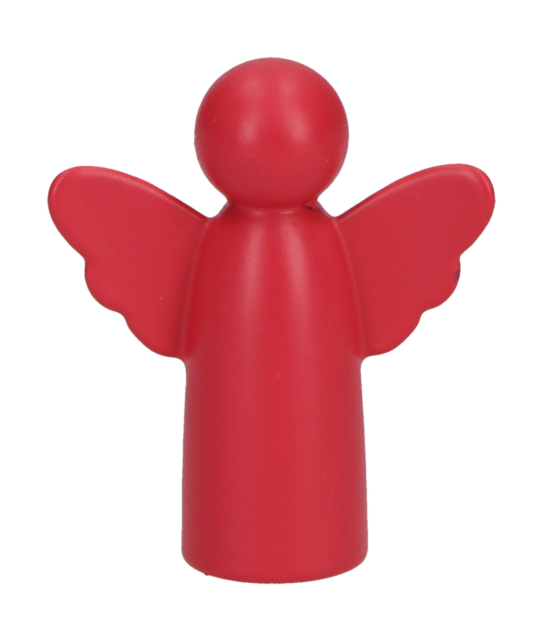 Engel-Figur aus Feinmetall in rot-matt, zum Aufstellen, Lieferung in Organzabeutel auf Backcard