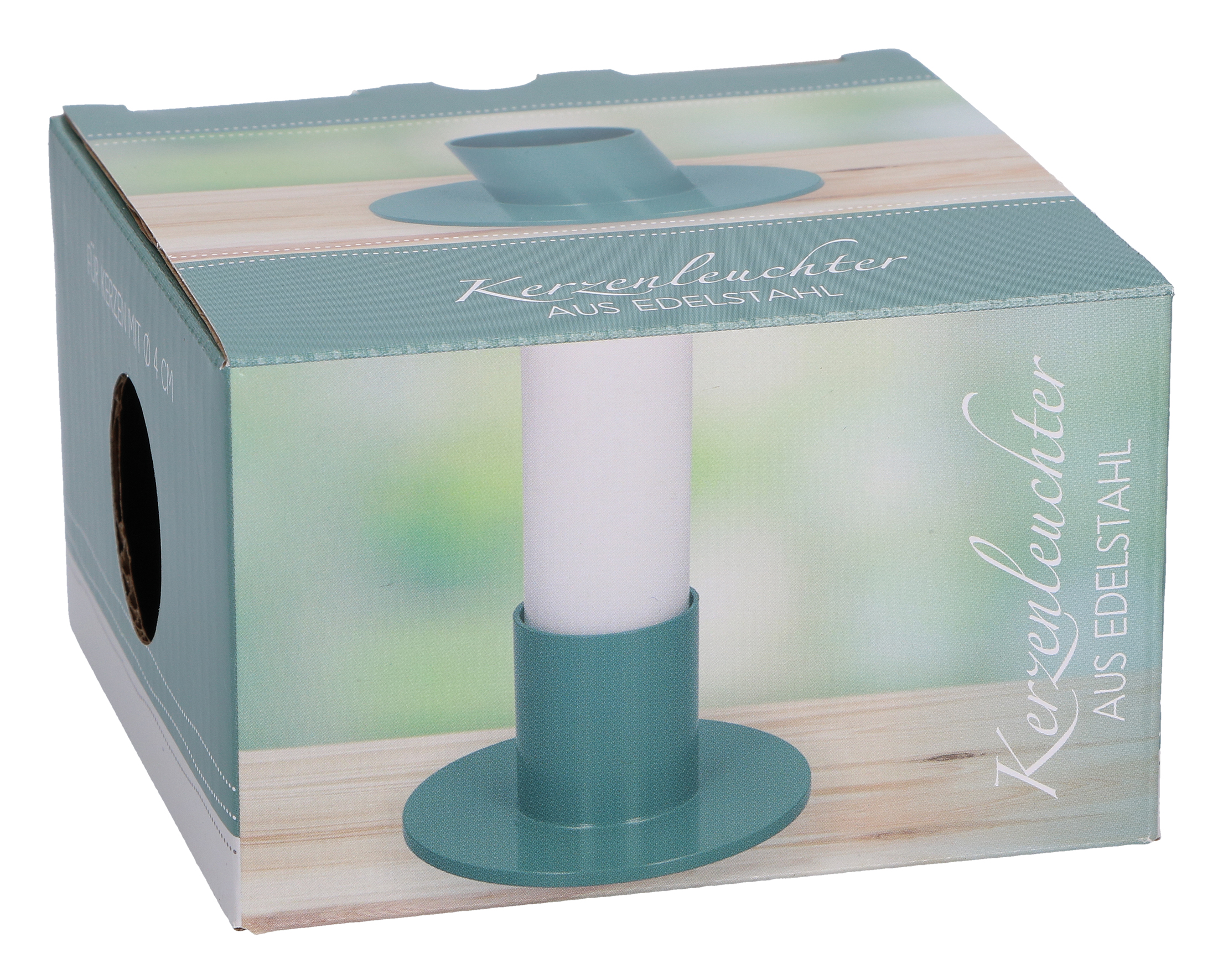 - Inhalt: Leuchter aus Edelstahl; salbeigrün-matt; für Kerzen Ø 40 mm; in Geschenkverpackung,