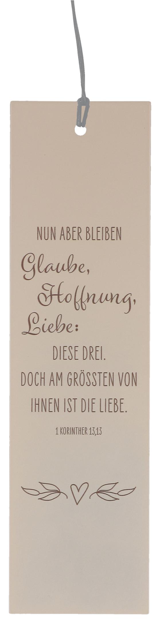 Text auf dem Produkt: Nun aber bleiben Glaube, Hoffnung, Liebe: diese drei. Doch am größten von ihnen ist die Liebe. (1. Korinther 13,13 / Das neue Testament © 2003 Verlag Butzon & Bercker, Kevelaer)