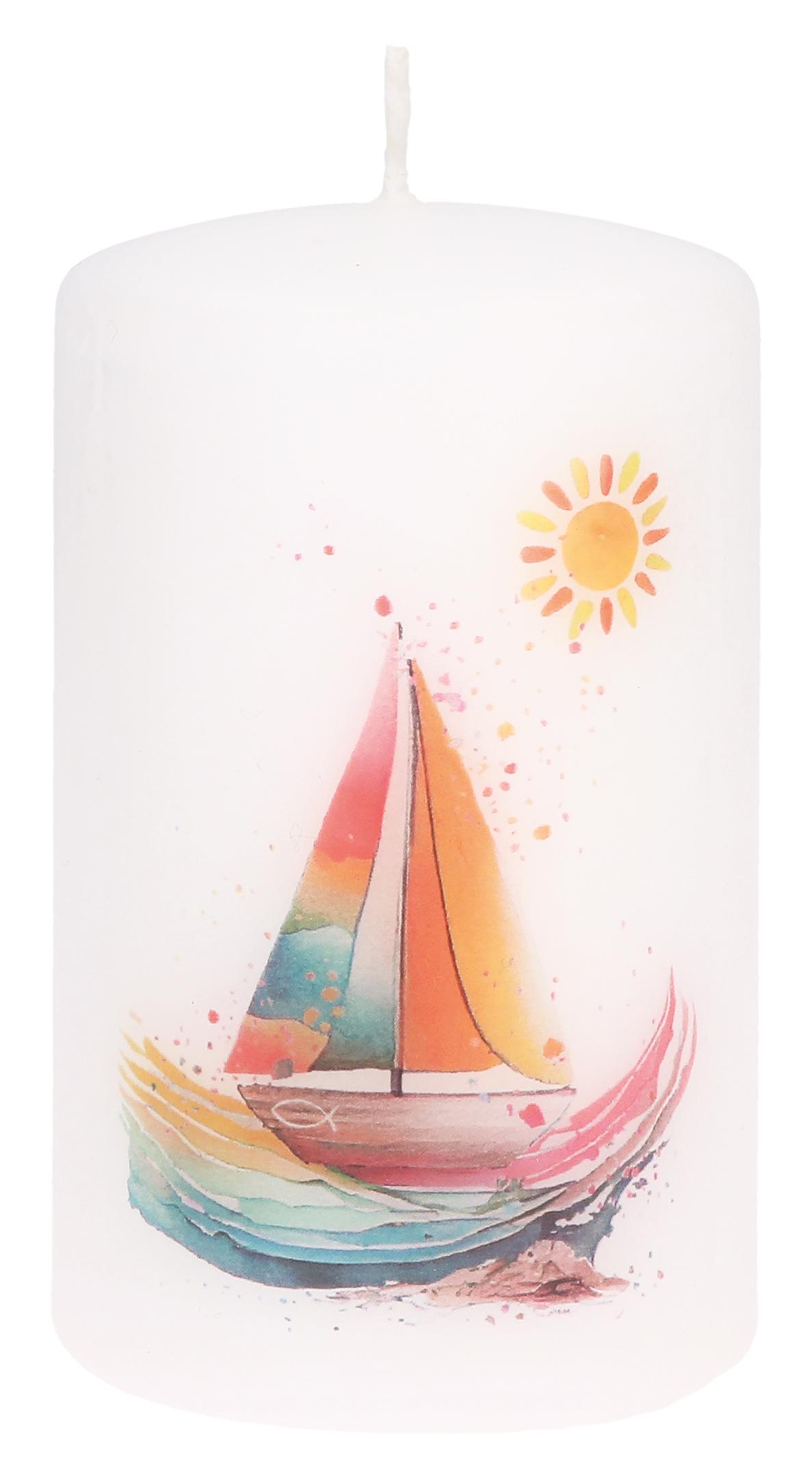 - Inhalt: Stumpenkerze mit Druckmotiv; Brenndauer ca. 28 Stunden,