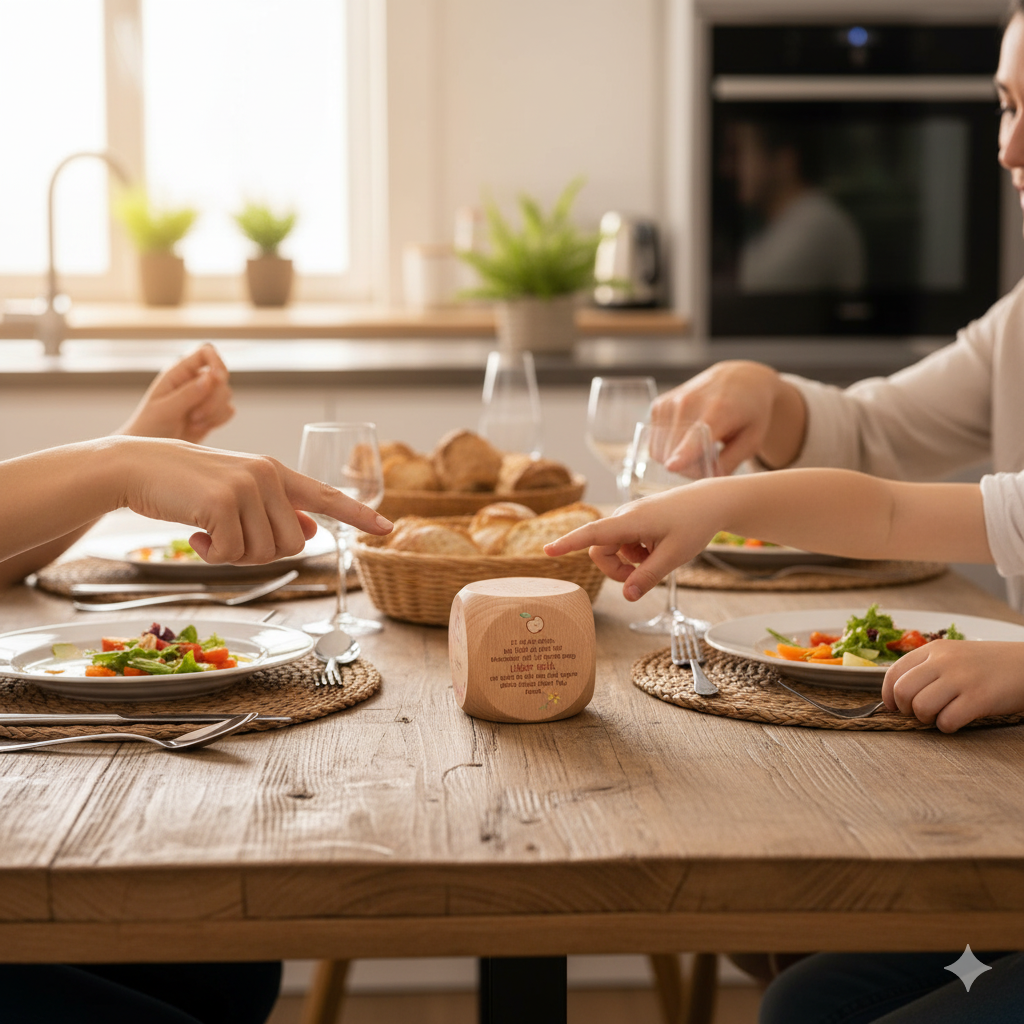 Die farbige Prägung auf dem Würfel enthält verschiedene Tischgebete, die Sie verwenden können, um das Essen mit einem spirituellen Moment zu bereichern.