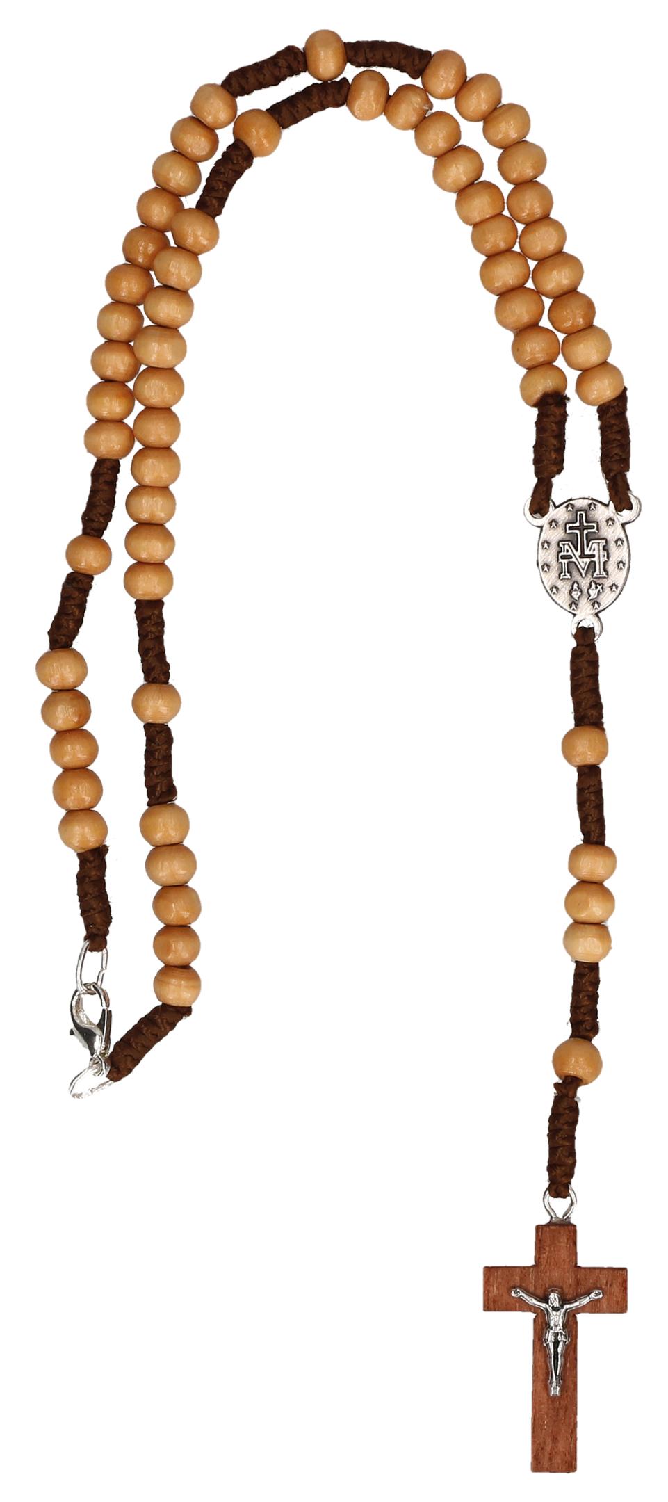 - Inhalt: Rosenkranz mit braunen Holzperlen, geknüpft, mit Madonna aus Metall und dunkelbraunen Holzkreuz mit Korpus aus Metall, mit Verschluss; Lieferung in Geschenkverpackung,