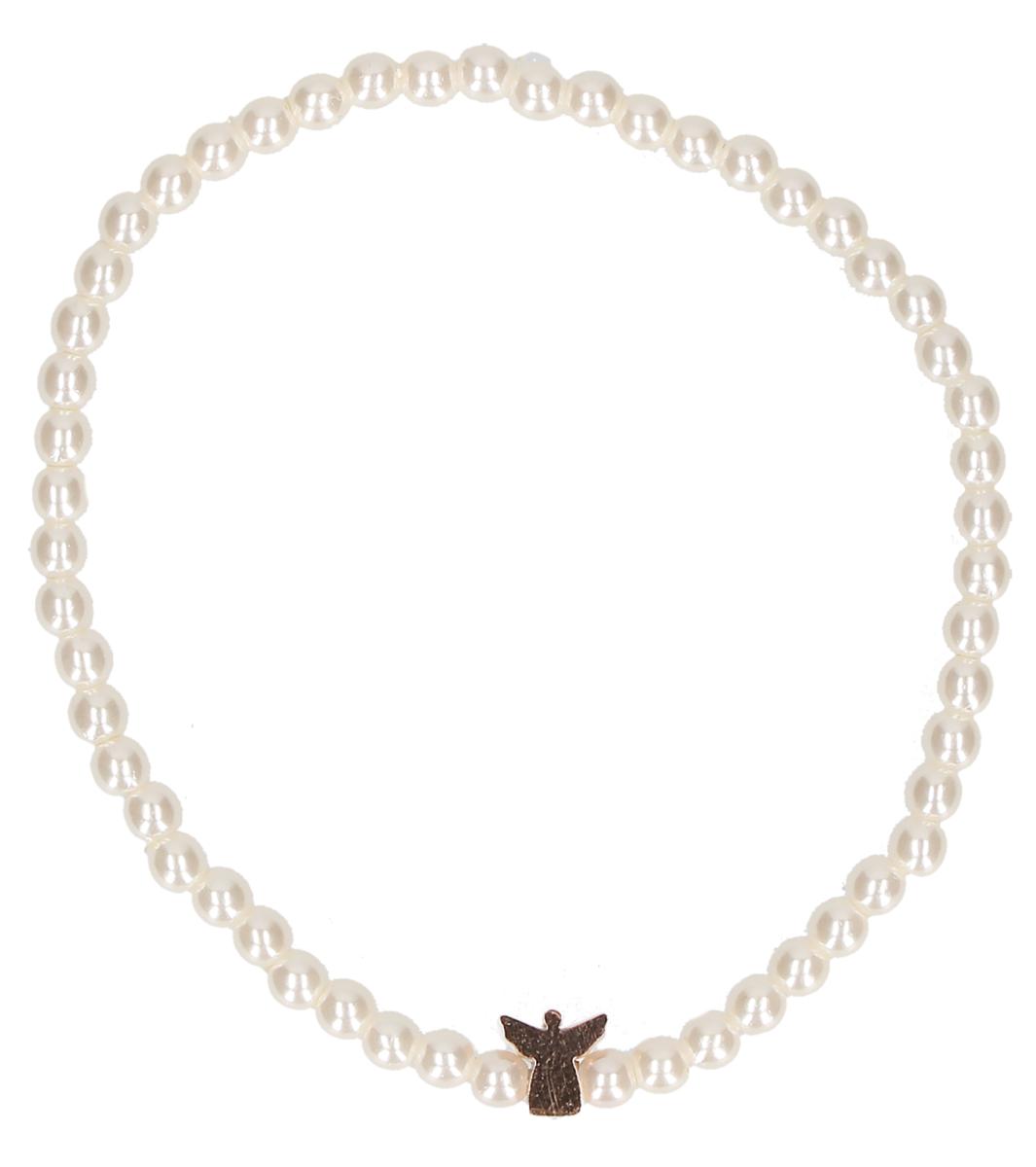 Geschenkset besteht aus dem Stretch-Armband aus weißen Kunststoffperlen mit roségoldfarbenem Engel aus Edelstahl, Innendurchmesser ca. 4,5 cm und Geschenkheft in Herzform: 16 Seiten, 9 x 9 cm; Lieferung in Organzabeutel auf Backcard mit Eurolochung