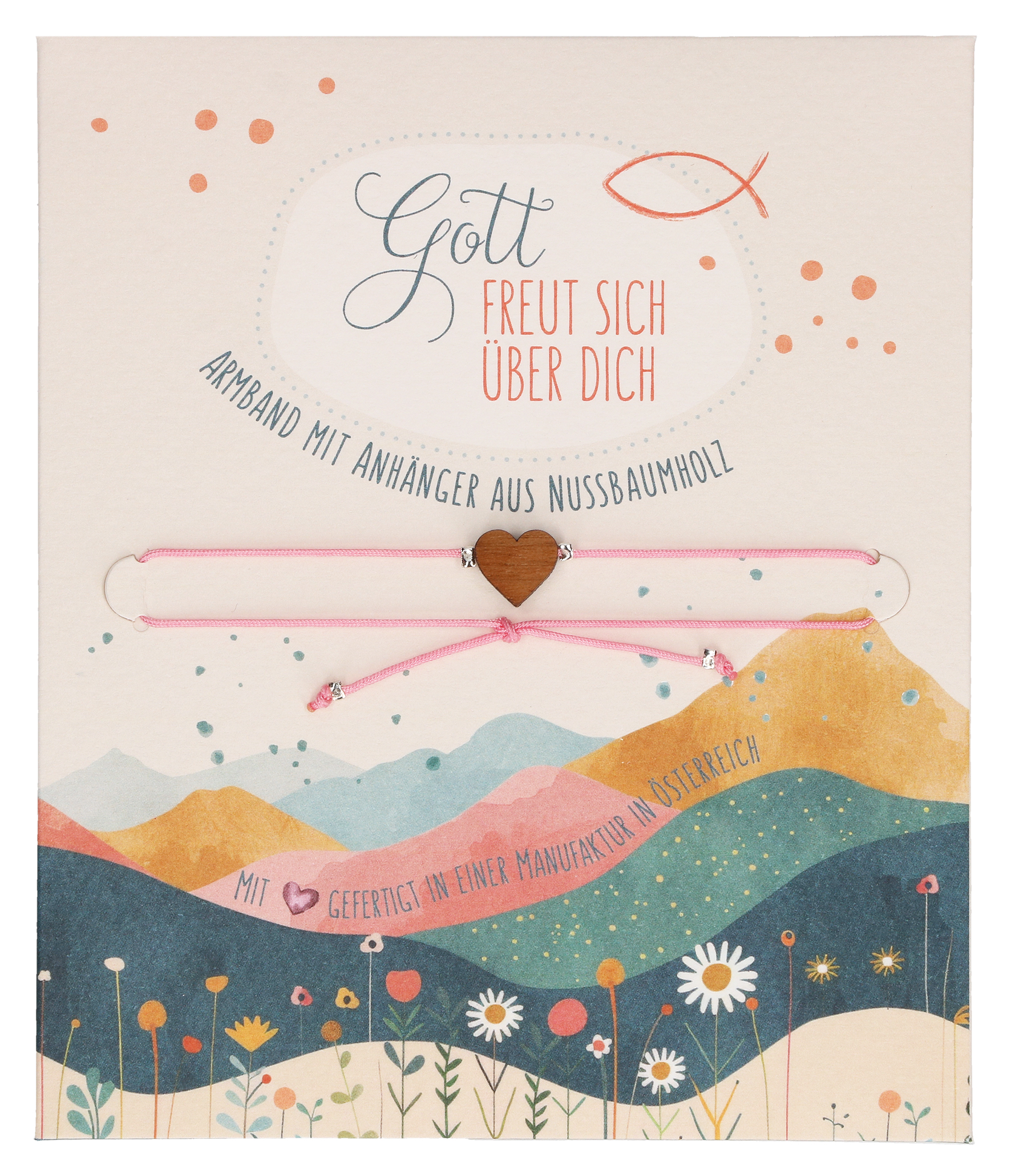 - Inhalt: Rosa Textilband zum Knoten, mit Herz-Anhänger aus Nussbaumholz; Lieferung in Geschenkverpackung,