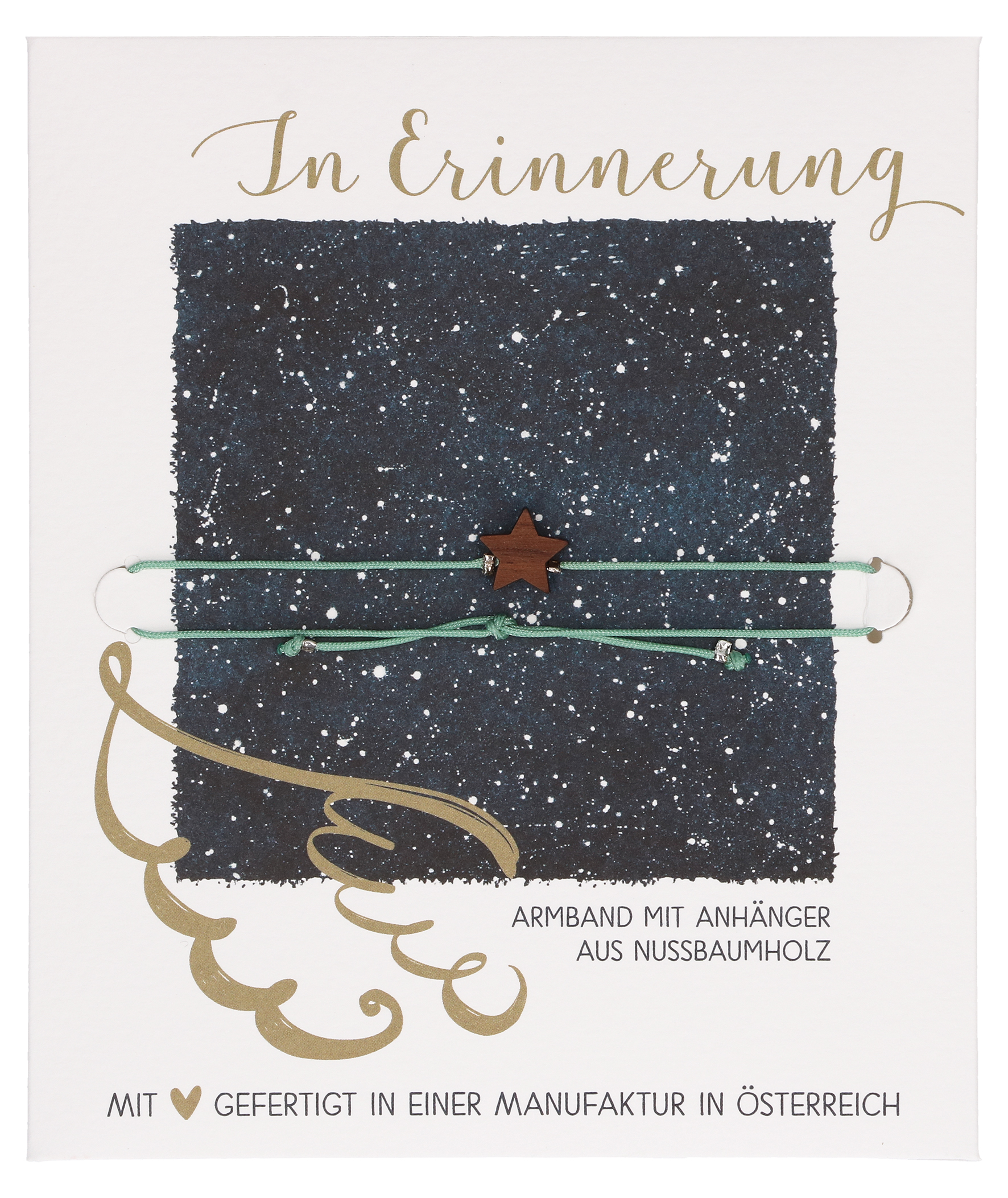 • Inhalt: Hellgrünes Textilband zum Knoten, mit Stern-Anhänger aus Nussbaumholz; Lieferung in Geschenkverpackung,