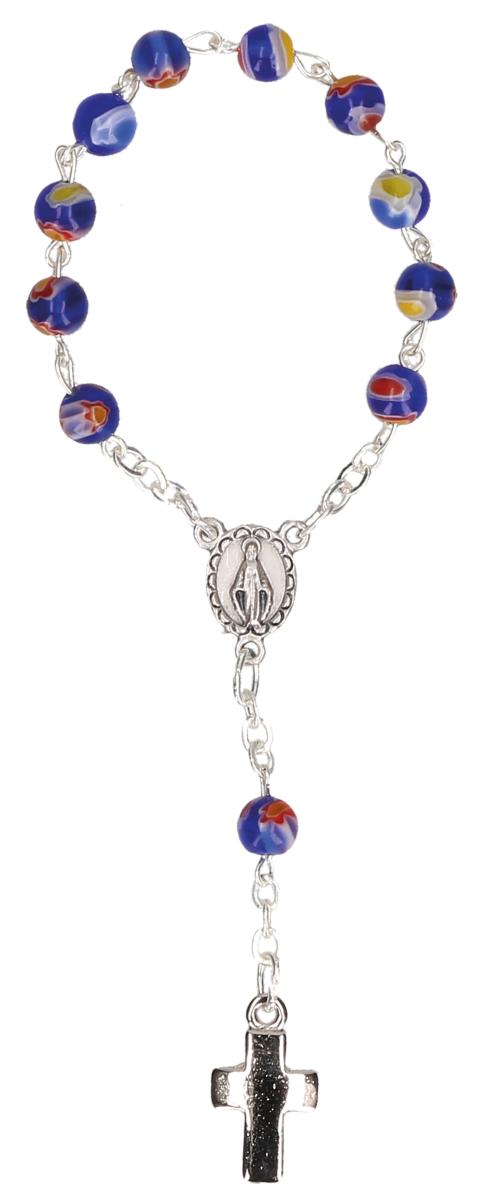 • Inhalt: 10er Rosenkranz mit blauen Millefioriperlen; gekettelt; mit Kreuz und Madonna aus Metall; 12 cm lang; Lieferung in der Kunststoffdose mit Klarsichtdeckel,
