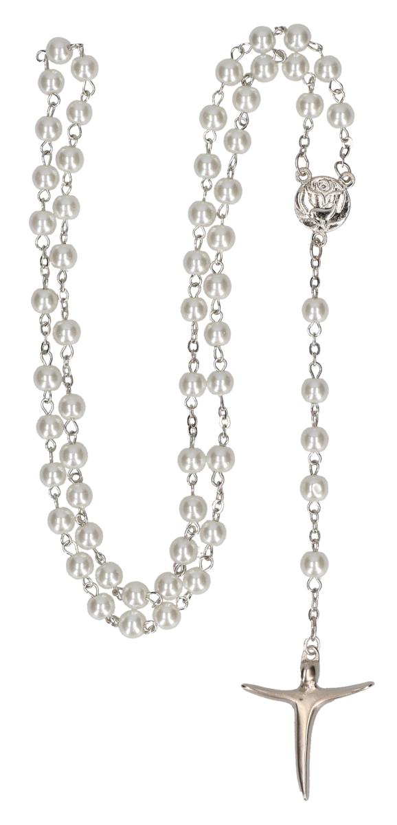 - Inhalt: Rosenkranz mit weißen Glasperlen, gekettelt, mit Kreuz aus Feinmetall, nach einem Modell der Künstlerin Kerstin Stark, 45 cm lang; Lieferung in Geschenkverpackung,