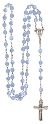 - Inhalt: Rosenkranz mit hellblauen Glasperlen, gekettelt, mit Kreuz aus Feinmetall, 34,5 cm lang; Lieferung in Geschenkverpackung,