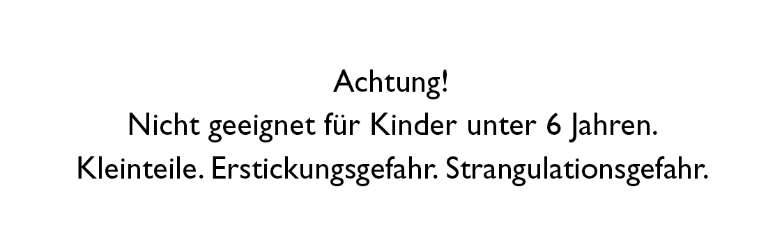 Warnhinweis: Achtung! Nicht geeignet für Kinder unter 6 Jahren. Kleinteile. Erstickungsgefahr. Strangulationsgefahr.