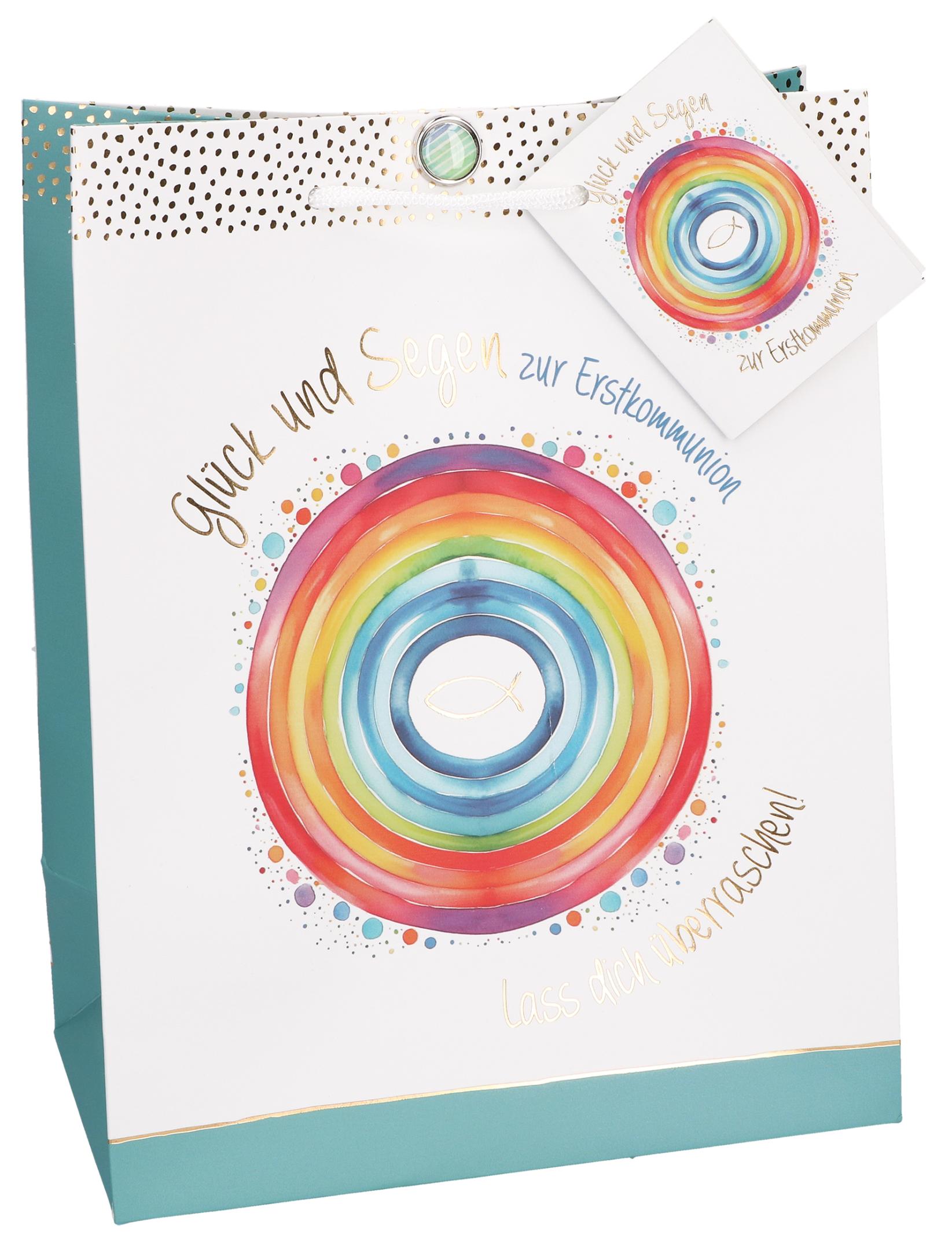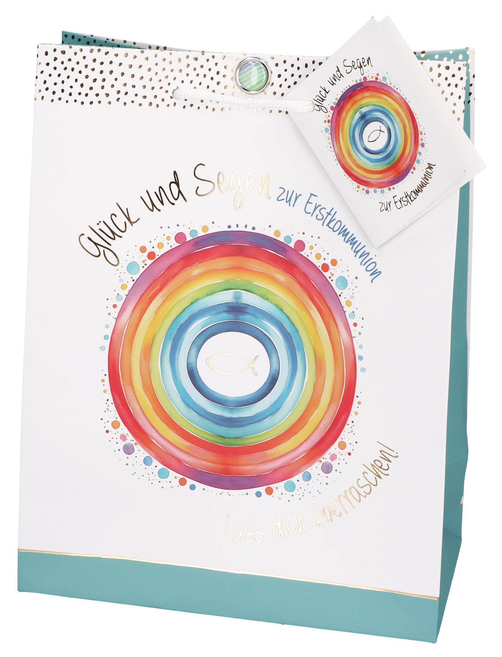 - Inhalt: Wundertüte zur Erstkommunion, farbig bedruckt, mit Tragekordel und einem Brad als Verschluss,