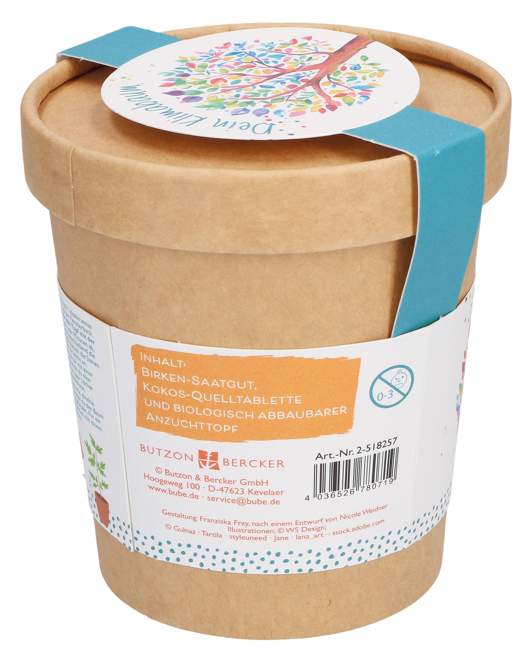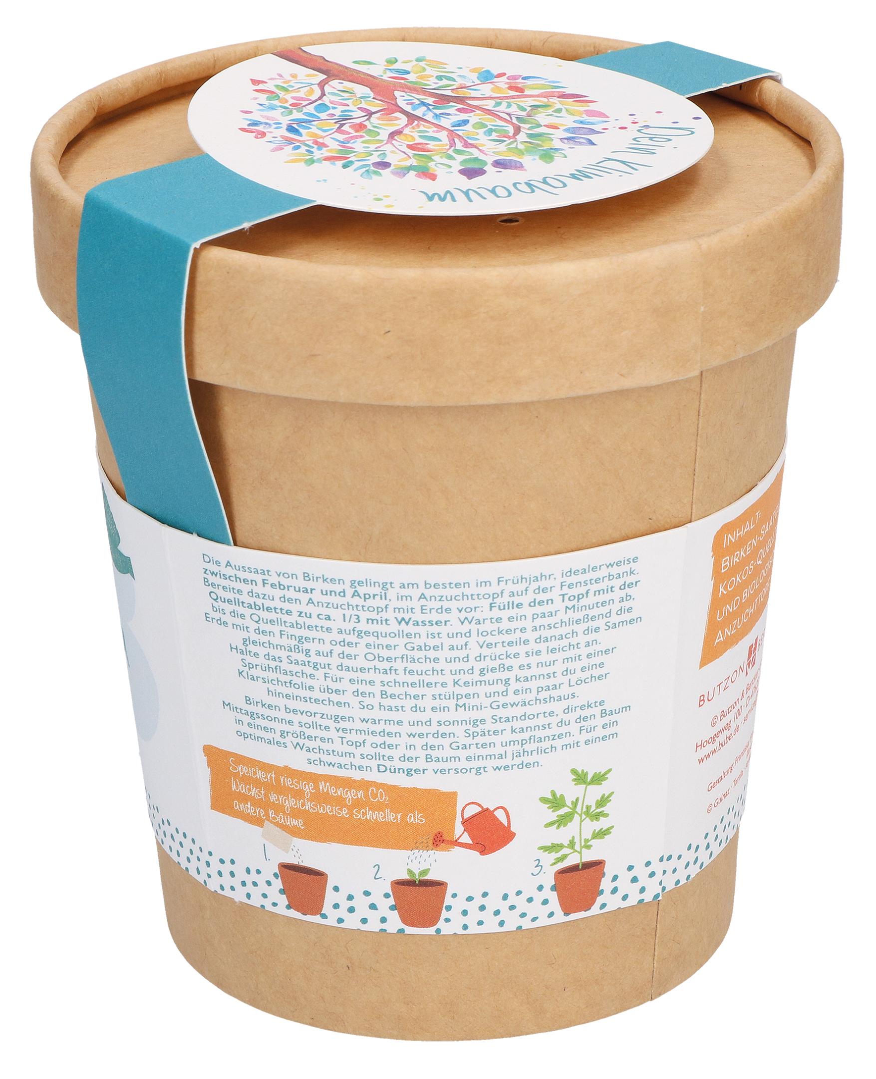 - Inhalt: Klimabaum-Anzuchtset in einem Pflanzbecher inkl. Birke-Saatgut, einer Quelltablette und Anleitung auf der Banderole,