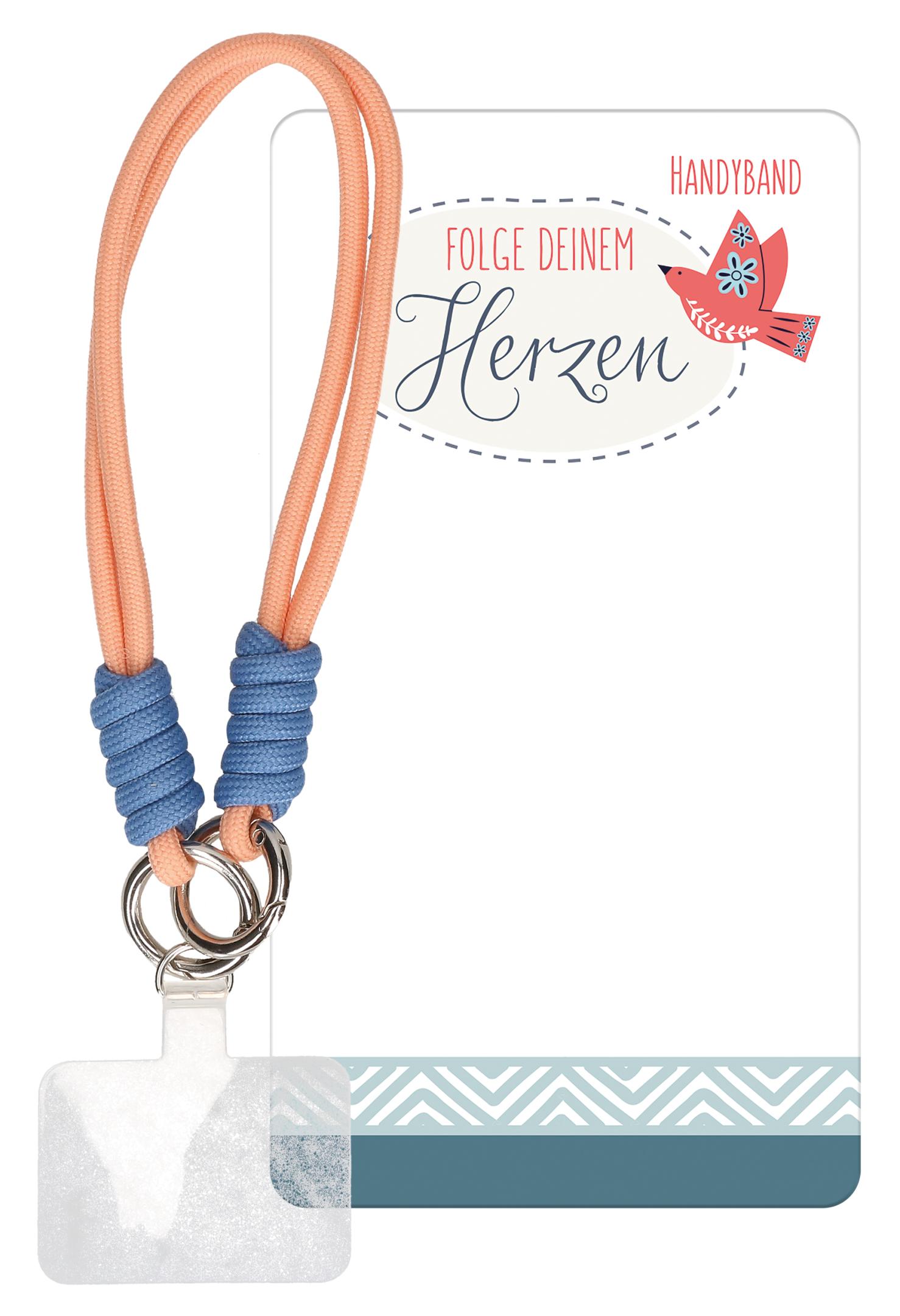 Dieses trendige Handyband in sanftem lachs-blau erinnert jeden Tag daran: Folge deinem Herzen! Mit seinen silberfarbenen Metallringen und der transparenten Universal-Handyhalterung ist es nicht nur stylisch, sondern auch unglaublich praktisch.