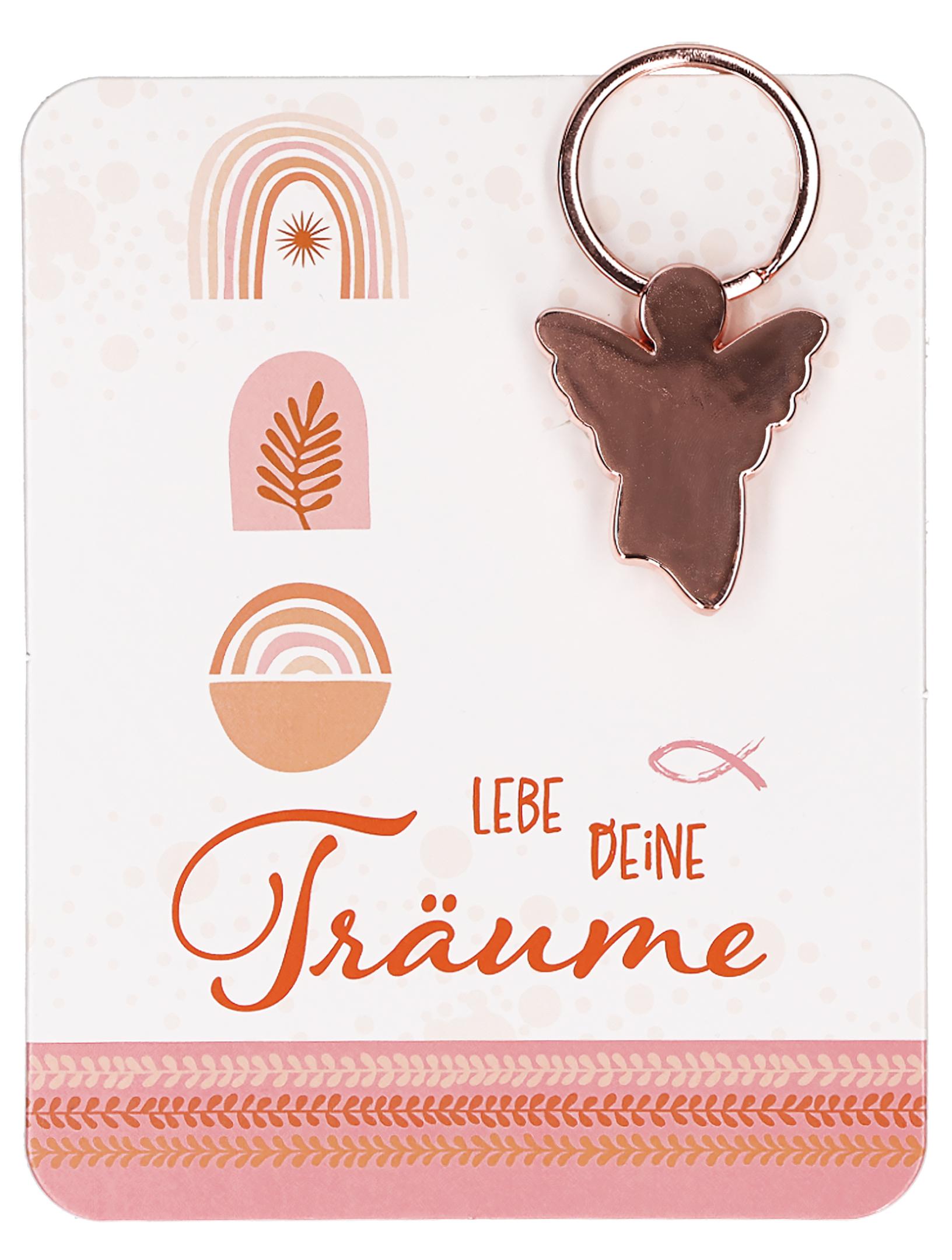 - Inhalt: Engel-Schlüsselanhänger aus roségoldfarbenem Metall; Lieferung auf Backcard,